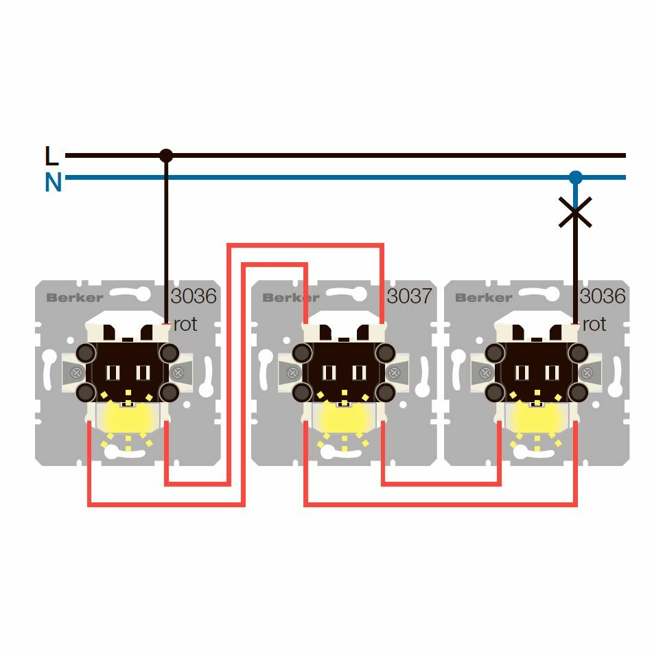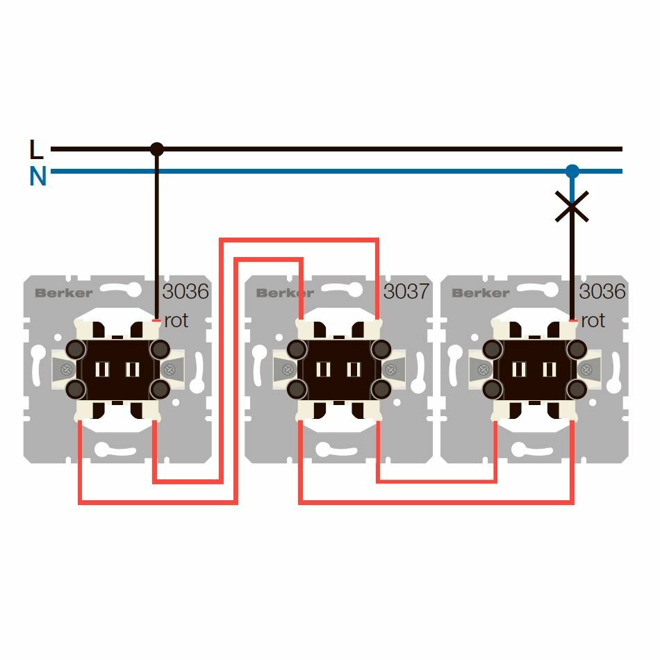 3037 Механизм переключателя 1-клавишного перекрестного коллекции скрытый монтаж Berker
