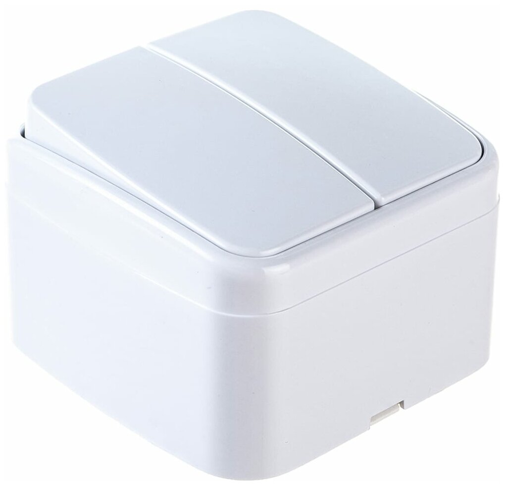 Выключатель 2-кл. ОП Электра 10А IP20 бел. Союз 0031Выключатель 2-кл. ОП Электра бел. Союз 0031 – электроустановочное устройство открытой установки (поверхностный монтаж). Представляет собой двухклавишный выключатель. Изготовлен из пластика, белого цвета. Поставщик: ТМ "Союз".