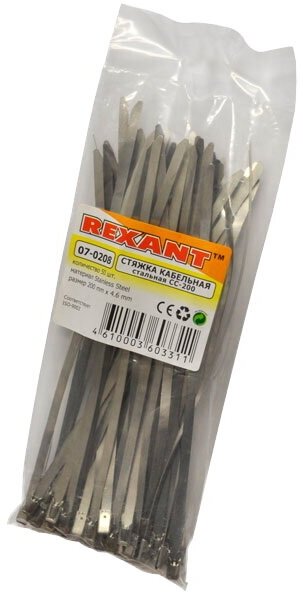 07-0208 Хомут кабельный 4.6х200 сталь серебр. (уп.50шт) Rexant
