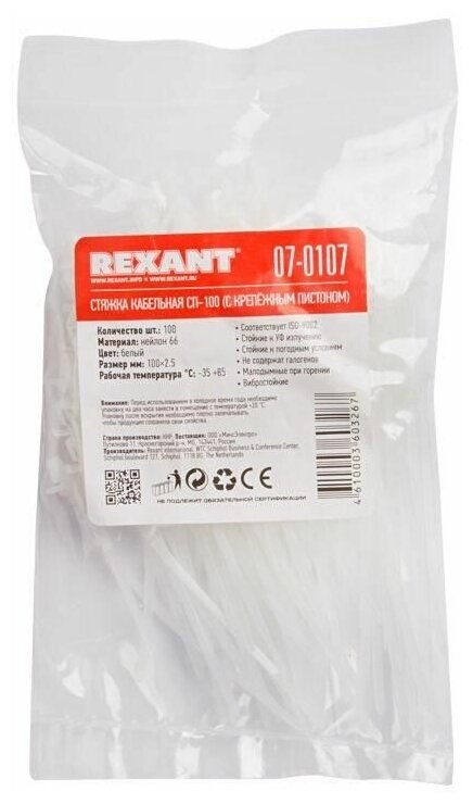 На сегодняшний день товар «07-0107 Хомут кабельный 2.5х100 P6.6 бел. с крепежным пистоном (уп.100шт) Rexant» можно купить с кешбеком в 2 магазинах: xcom-shop, E2e4online