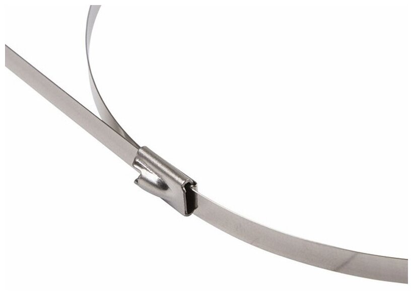 Хомут обеспечивает прочный и долговечный крепёж. Одноразовый зажим производится за счет шарикового механизма.