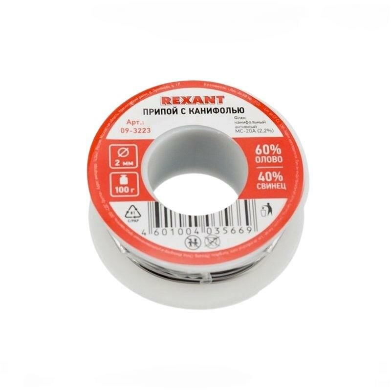 09-3223 Припой с канифолью 100гр d=2.0мм (Sn60 Pb40 Flux 2.2%) Rexant 2 мм