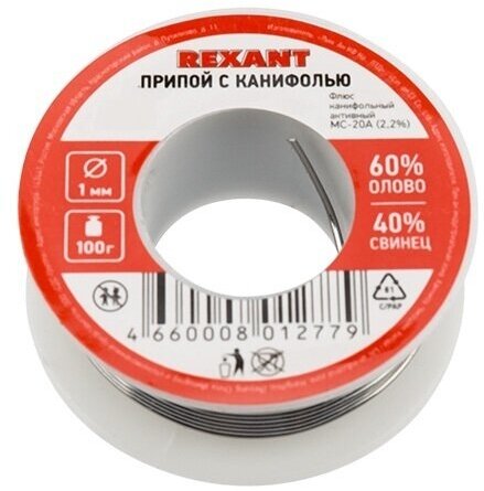09-3203 Припой с канифолью 100гр. d1.0мм Rexant