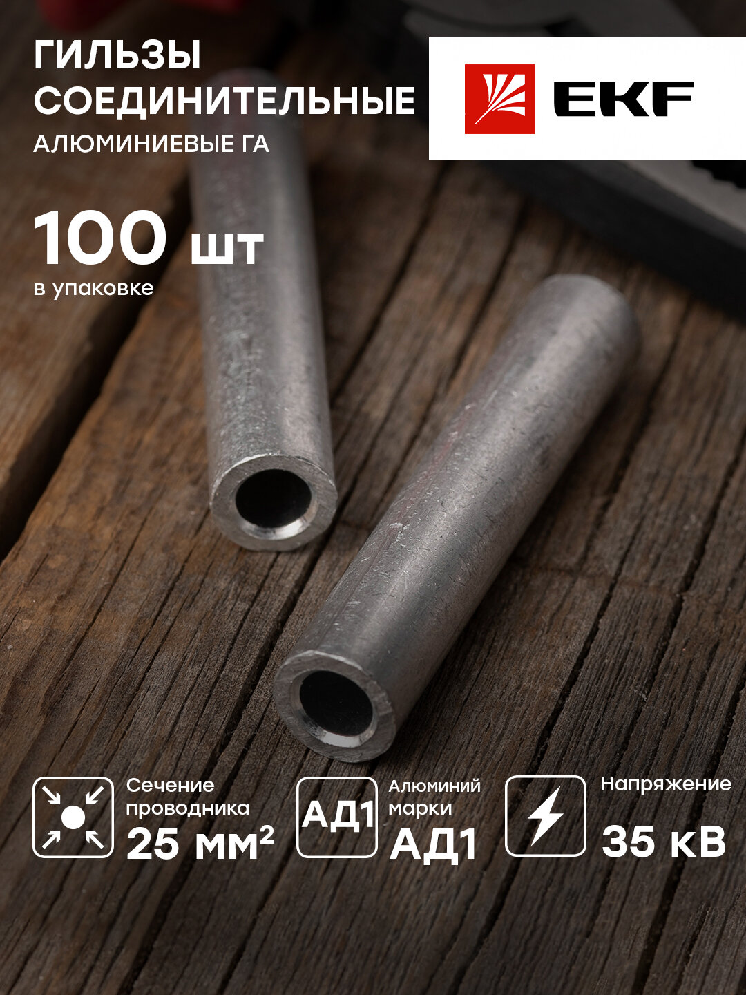 gl-25-7 Гильза соединительная алюминиевая ГА 25-7 PROxima Упаковка (100 шт.) EKF