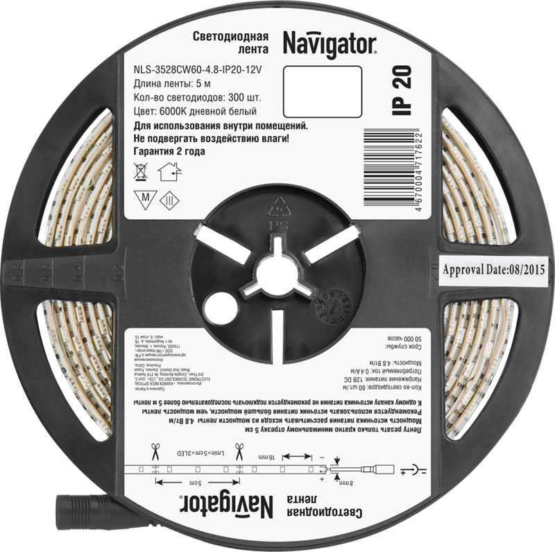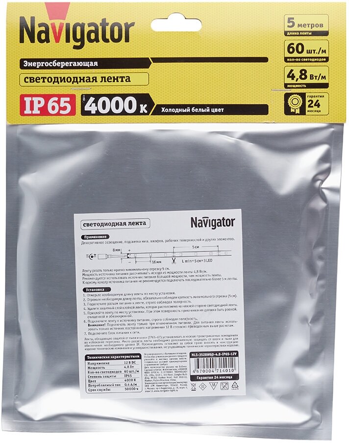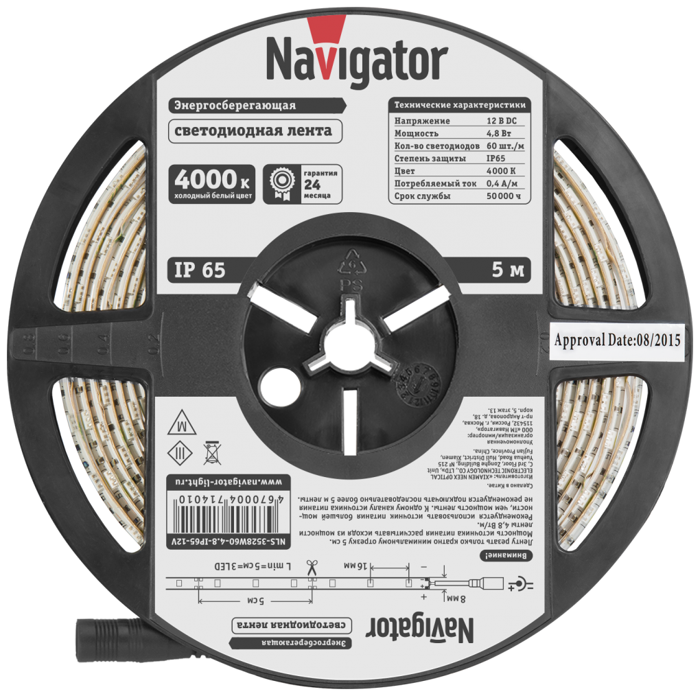 71401 NLS-3528W60-4.8-IP65-12V R5 4000K на катушке 5 метров светодиодная лента Navigator 71 401 NLS-3528W60-4.8-IP65-12V R5
