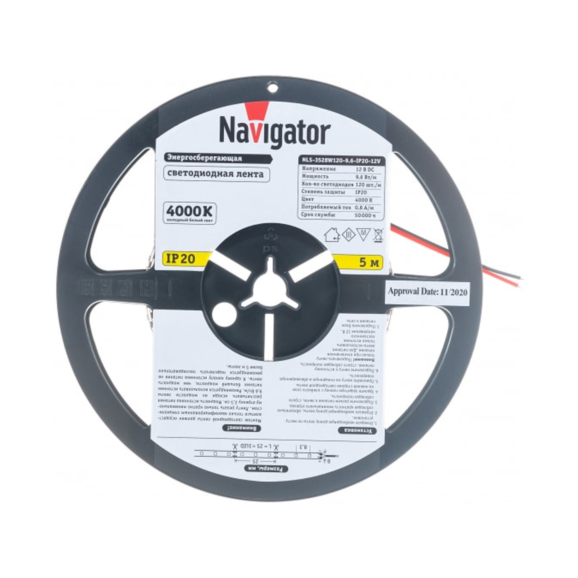71408 NLS-3528W120-9.6-IP20-12V 4000Kсветодиодная лента (5м) Navigator 71 408 NLS-3528W120-9.6