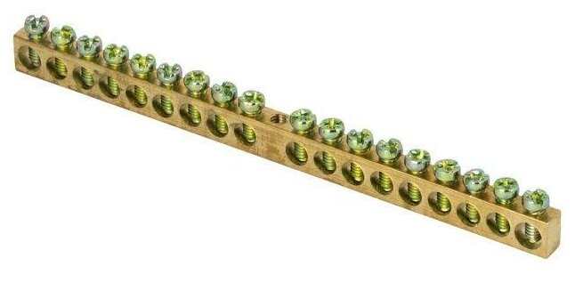 ОПИСАНИЕ. Шины предназначены для присоединения нулевых проводников (шина N) и заземления (шина PE). Шины выполнены из латуни и никелированной латуни. Нулевая шина устанавливается на изоляторе. ПРЕИМУЩЕСТВА. Изоляторы изготовлены из пластика, не поддерживающего горение. Материал контактной части: качественная латунь. Прижимные винты изготовлены из никелированной стали. Широкий выбор шин позволяет точно подобрать подходящую под размер установки шину. Скругление контактной части винта предотвращает срез проводника при затяжке. ПРИМЕНЕНИЕ. В шкафах, щитах, сборках. В качестве комплектующих в технологическом оборудовании.