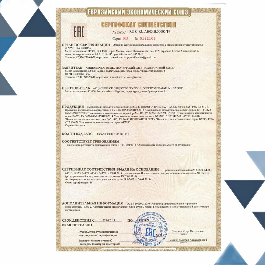 | Вид | автоматический выключатель |