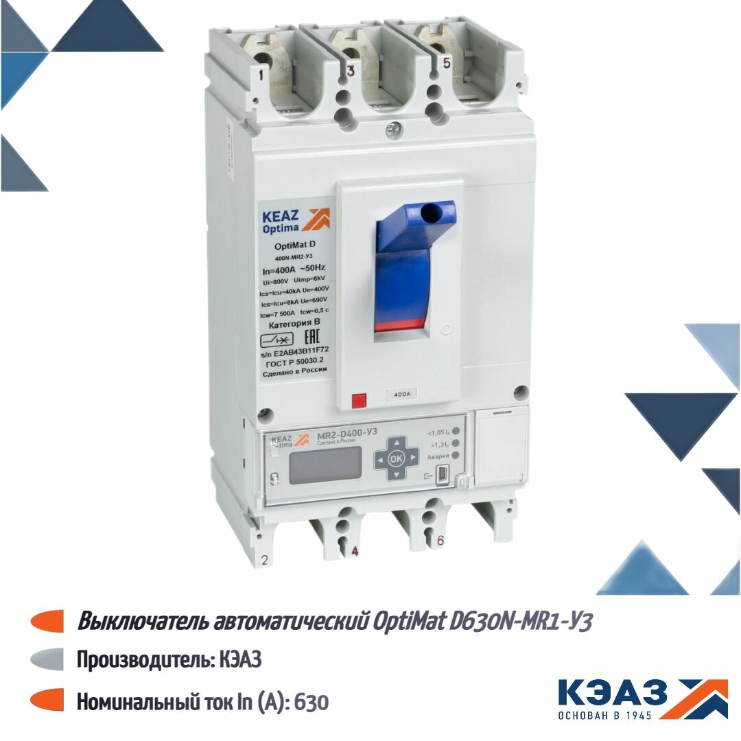 279890 Выключатель автоматический OptiMat D630N-MR1-У3 КЭАЗ