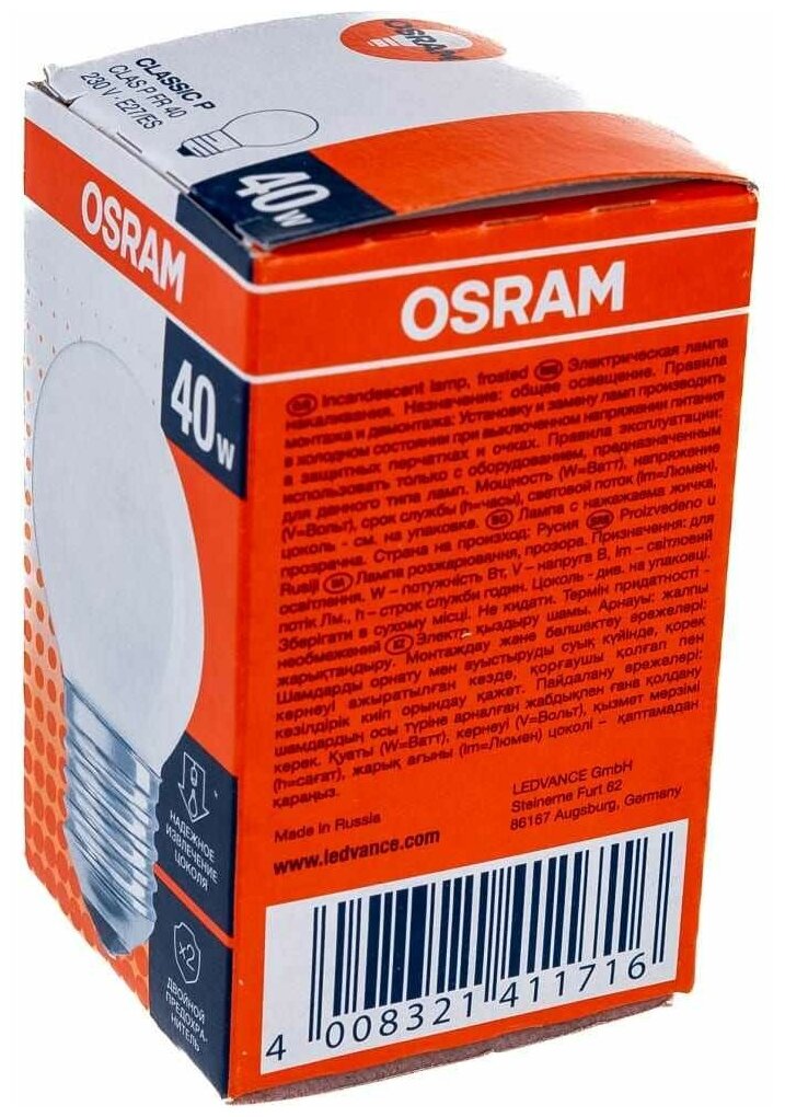 4008321411716 Лампа накаливания CLAS P матовая 40W E27 Osram