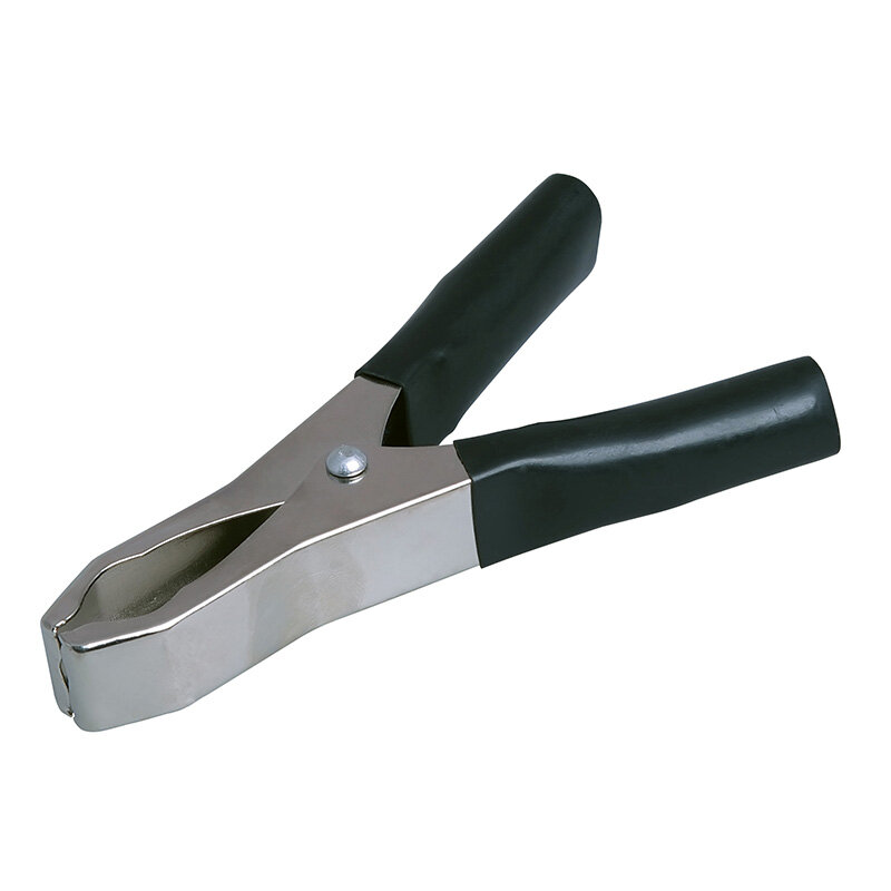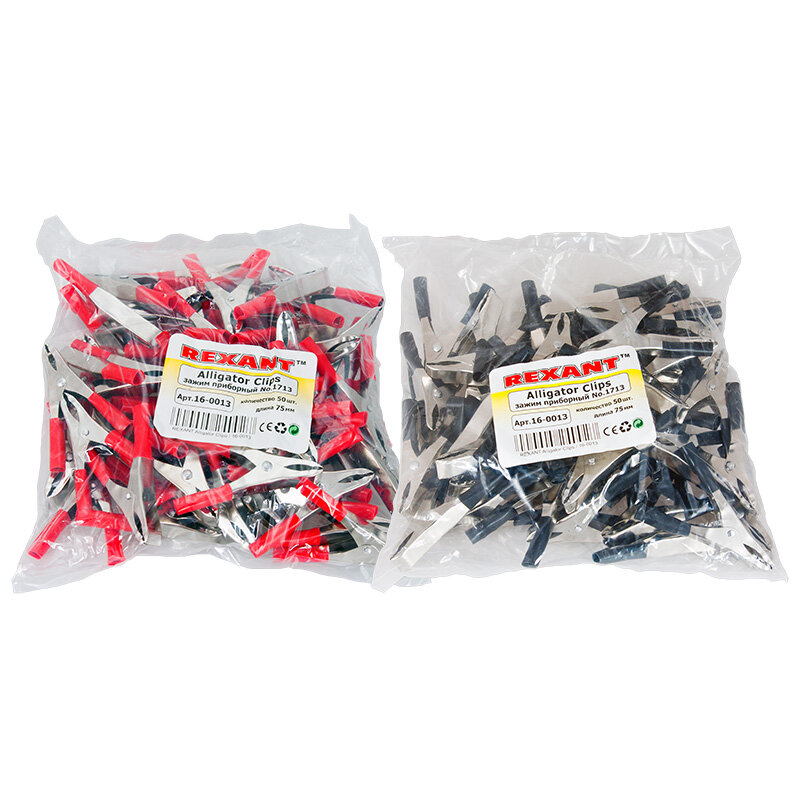 Зажим «крокодил» 15А 75мм REXANT представляет собой электромеханическое устройство, предназначенное для оперативного соединения или разъединения контакта проводов при выполнении измерительных работ или монтажа электрических и слаботочных сетей.Зажим получил свое название за схожесть с челюстями крокодила. Состоит он из двух фигурных деталей с «крокодильими» зубцами, скрепленных серединами специальным штифтом и способных поворачиваться на некоторый угол вокруг оси соединения. К одной из деталей монтируется контактный провод. Сжатие «челюстей» обеспечивается пружиной, вставленной с другой стороны штифта.Контактная часть изделия изготавливается из стали с никелированным покрытием. В целях безопасной эксплуатации зажима, ручки имеют изоляцию, изготовленную из ПВХ, что предохранит от поражения специалиста электрическим током. Чаще всего зажимы применяются парами черного и красного цвета (50/50).