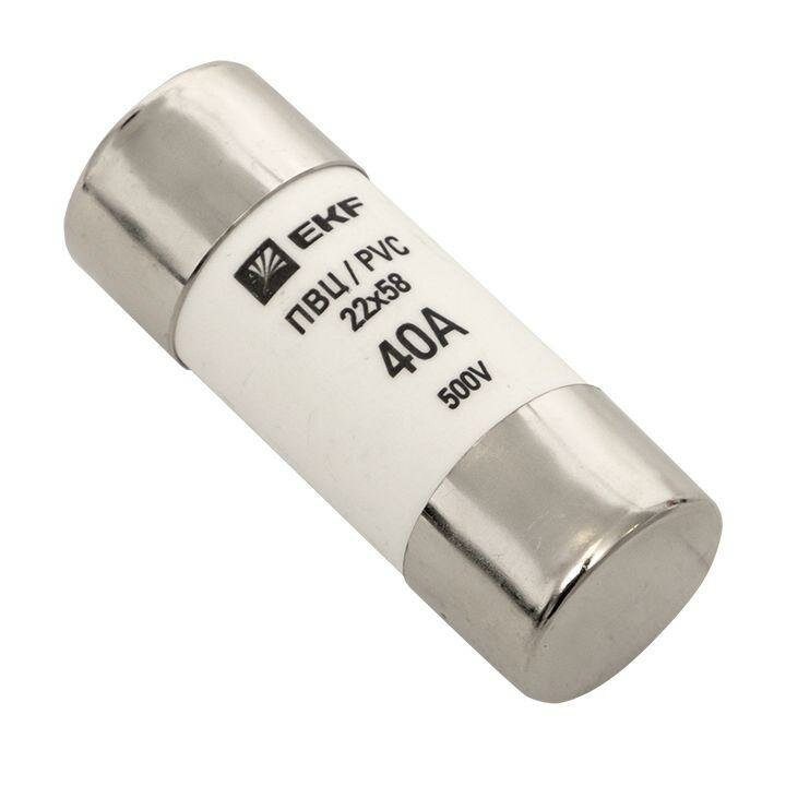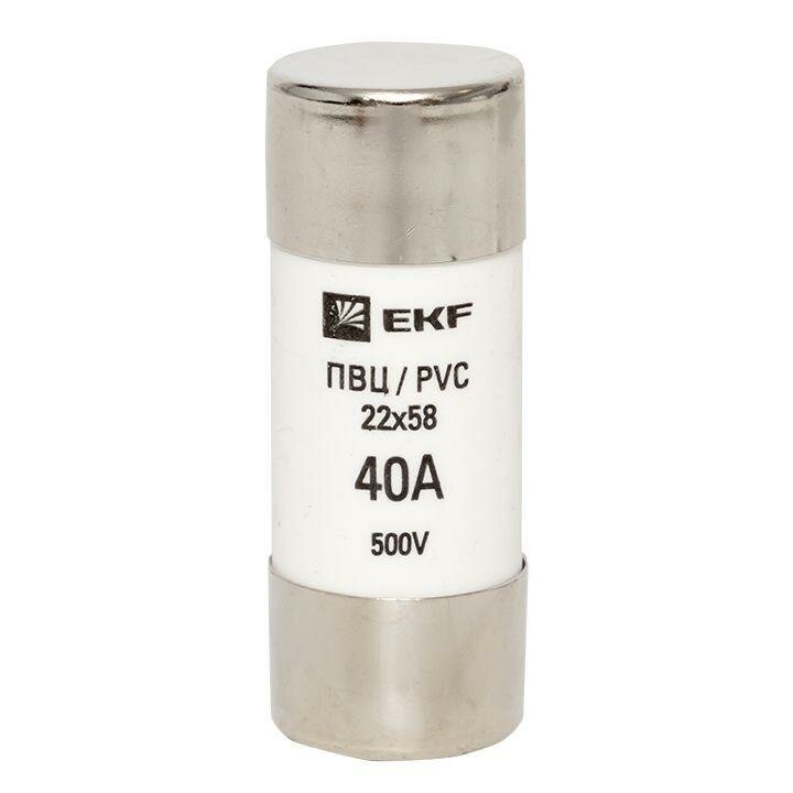 pvc-22х58-40 Плавкая вставка цилиндрическая ПВЦ (22х58) 40А PROxima EKF (размер: 22х58 мм)