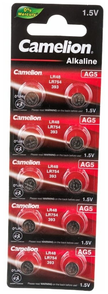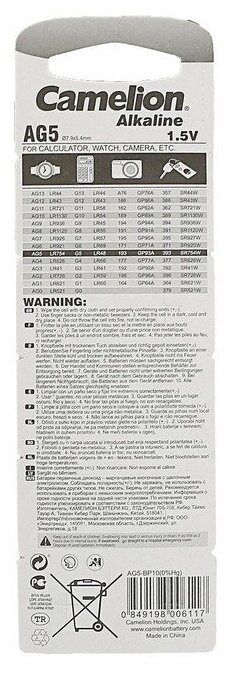 Camelion G 5 BL-10 Mercury Free (AG5-BP10(0%Hg), 393A/LR754/193 батарейка для часов) (10 шт. в уп-ке)