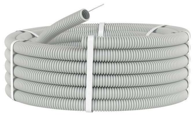 91540 Труба ПВХ гибкая гофр. д.40мм тяжёлая с протяжкой 20м цвет серый DKC ДКС