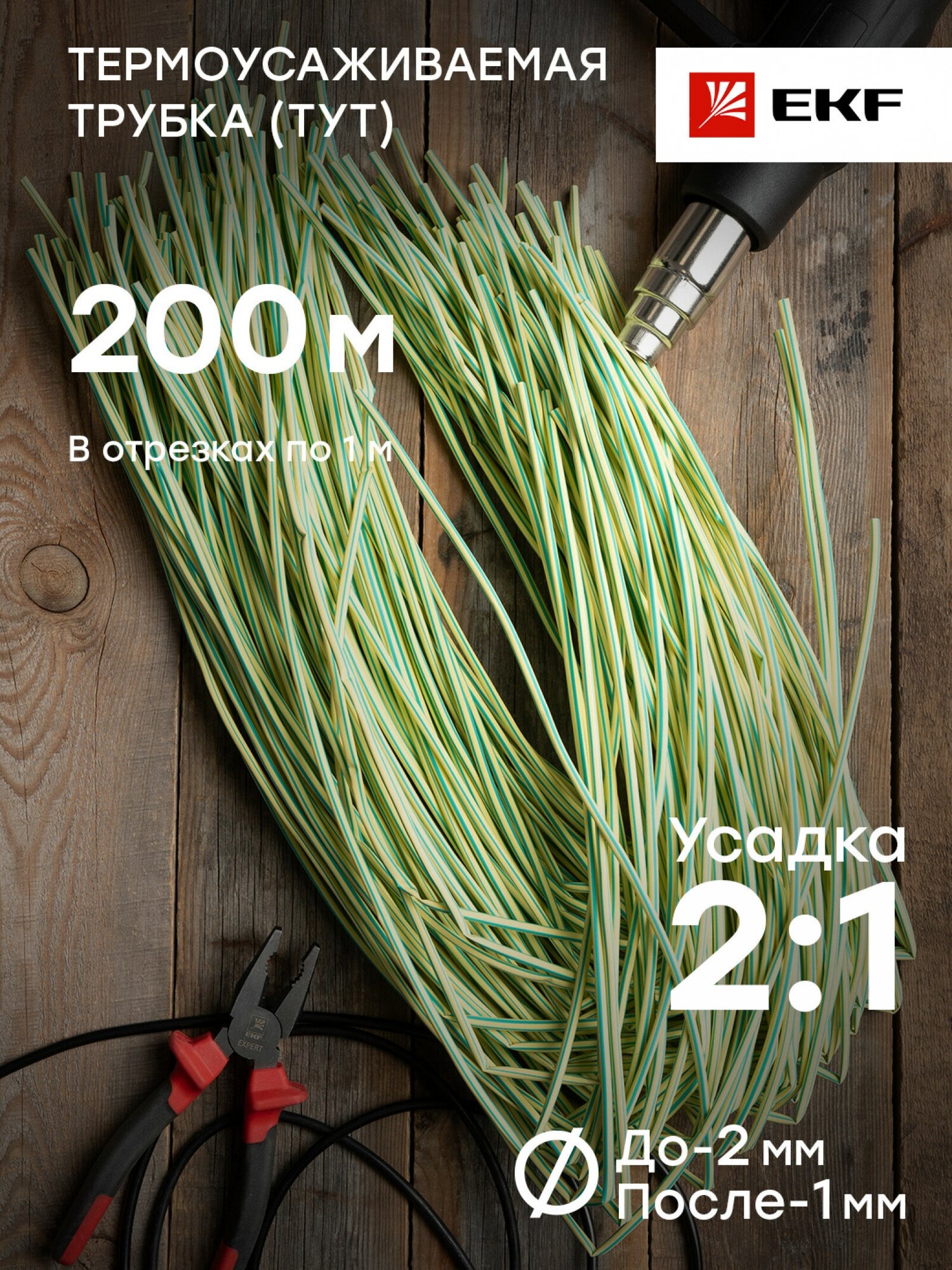 tut-2-yg-1m Трубка термоусадочная ТУТ 2/1 жел./зел. (уп.200шт) PROxima EKF