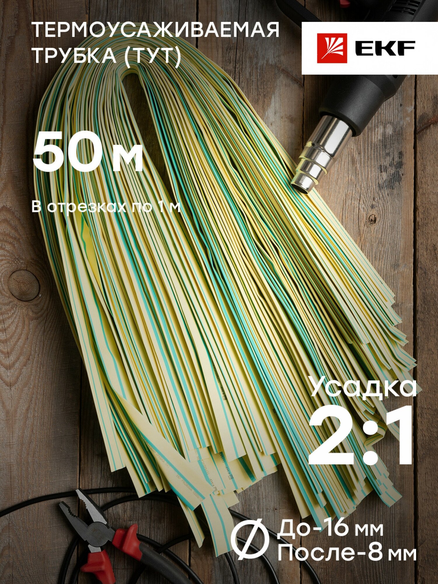 tut-16-yg-1m Трубка термоусадочная ТУТ 16/8 жел./зел. (уп.50шт) PROxima EKF
