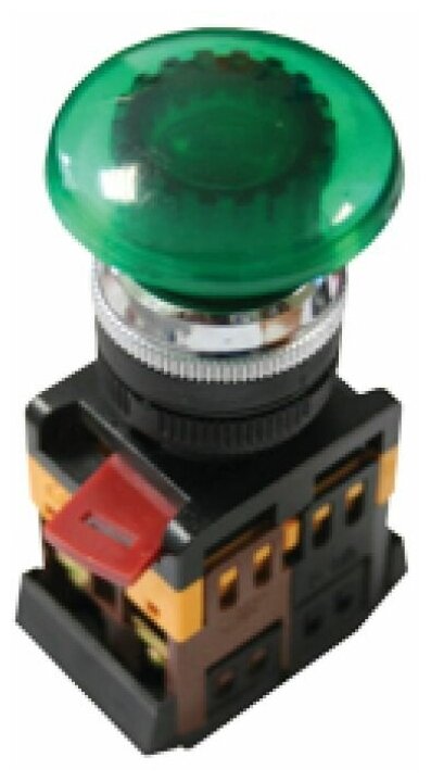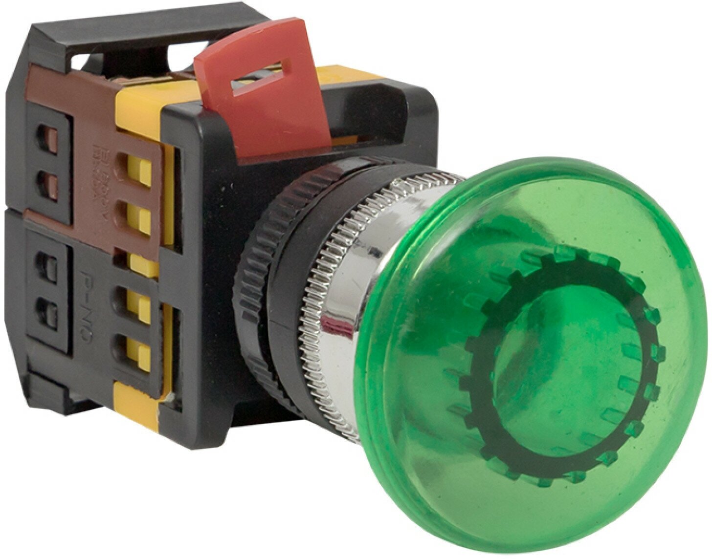 Кнопки типа "Грибок" применяются в электрических цепях переменного тока частотой 50/60 Гц с напряжением до 660 В и постоянным напряжением до 400 В. Исполнение такого типа ( активная часть выступает) позволяет простым нажатием быстро подать управляющий сигнал на оборудование. Включение кнопки облегчается за счет большой площади поверхности нажатия.