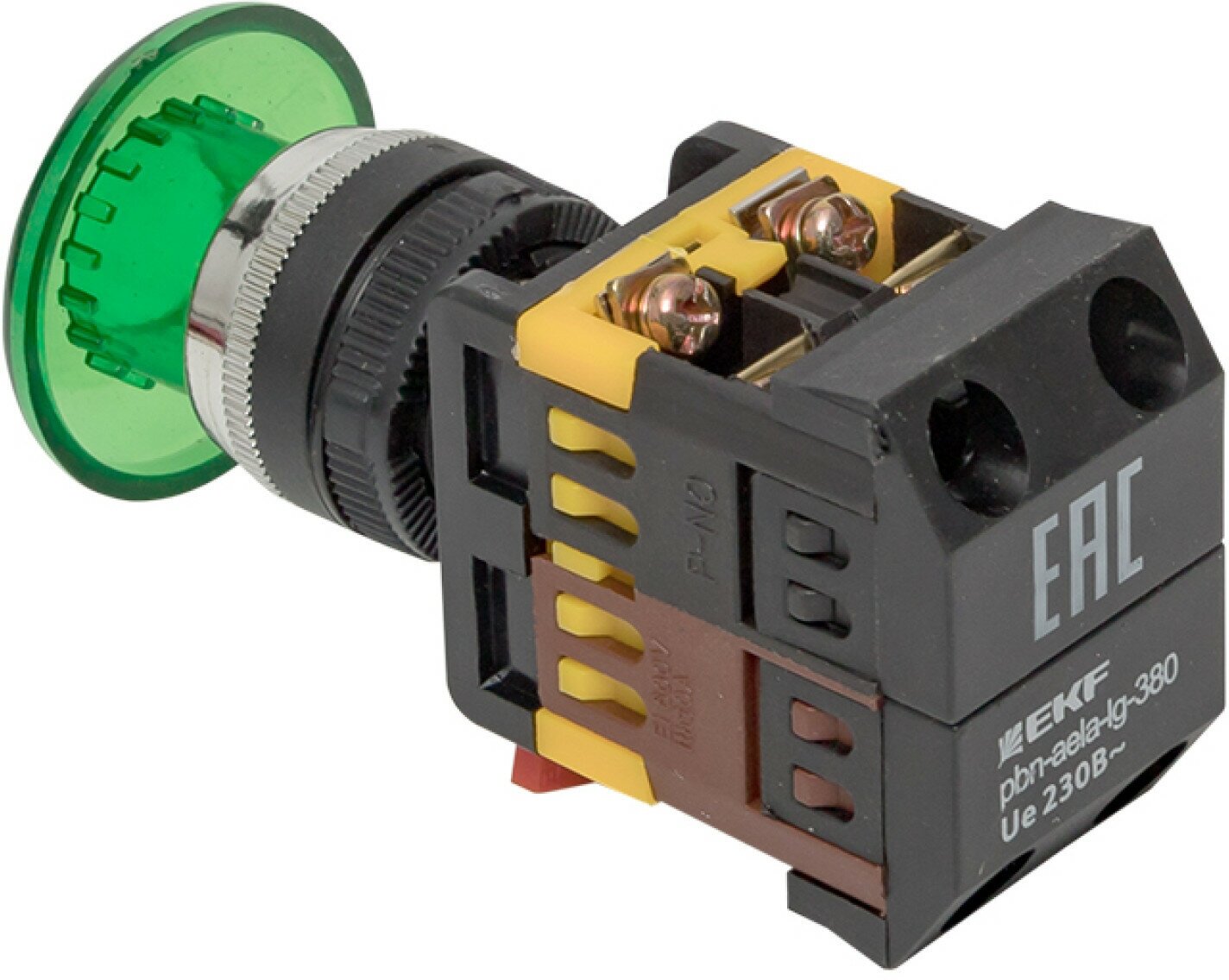pbn-aela-1g-380 Кнопка AELA-22 зеленая с подсветкой NO+NC 380В Грибок PROxima EKF
