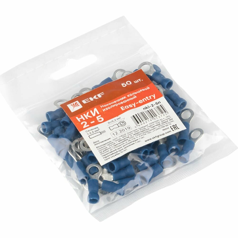 nki-2-5n Наконечник кольц. изол. НКИ 2-5 (уп.50шт) EKF PROxima НКИ 2-5