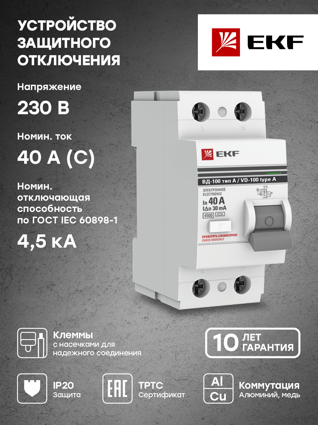 | Тип тока утечки | AC (перемен.) |