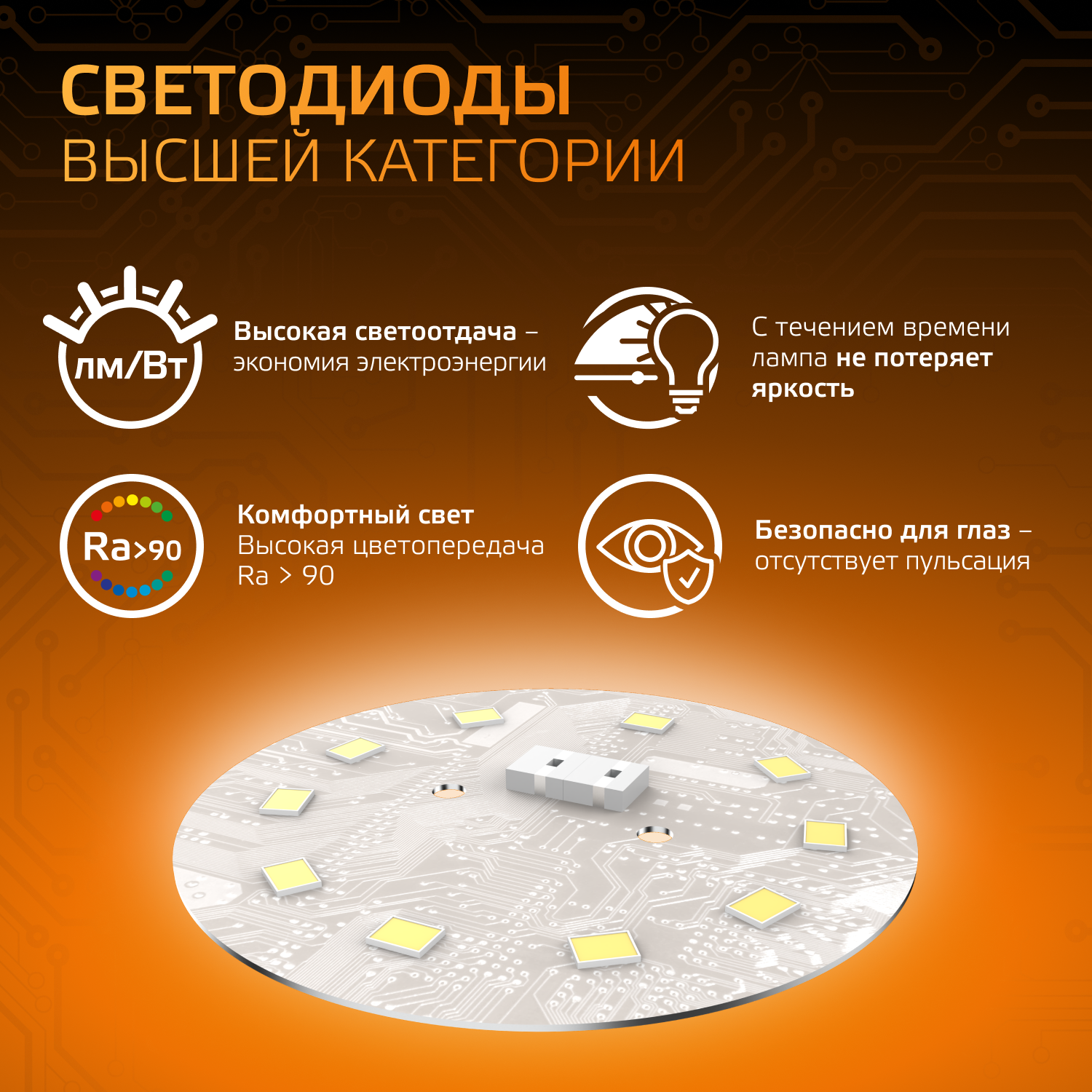 - Цветность: теплый белый (менее 3300 К)