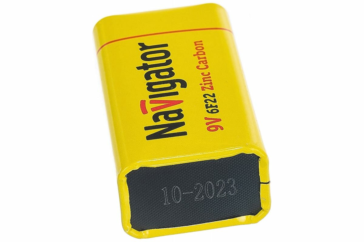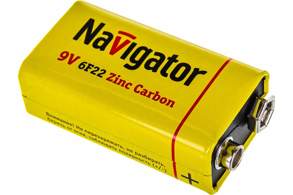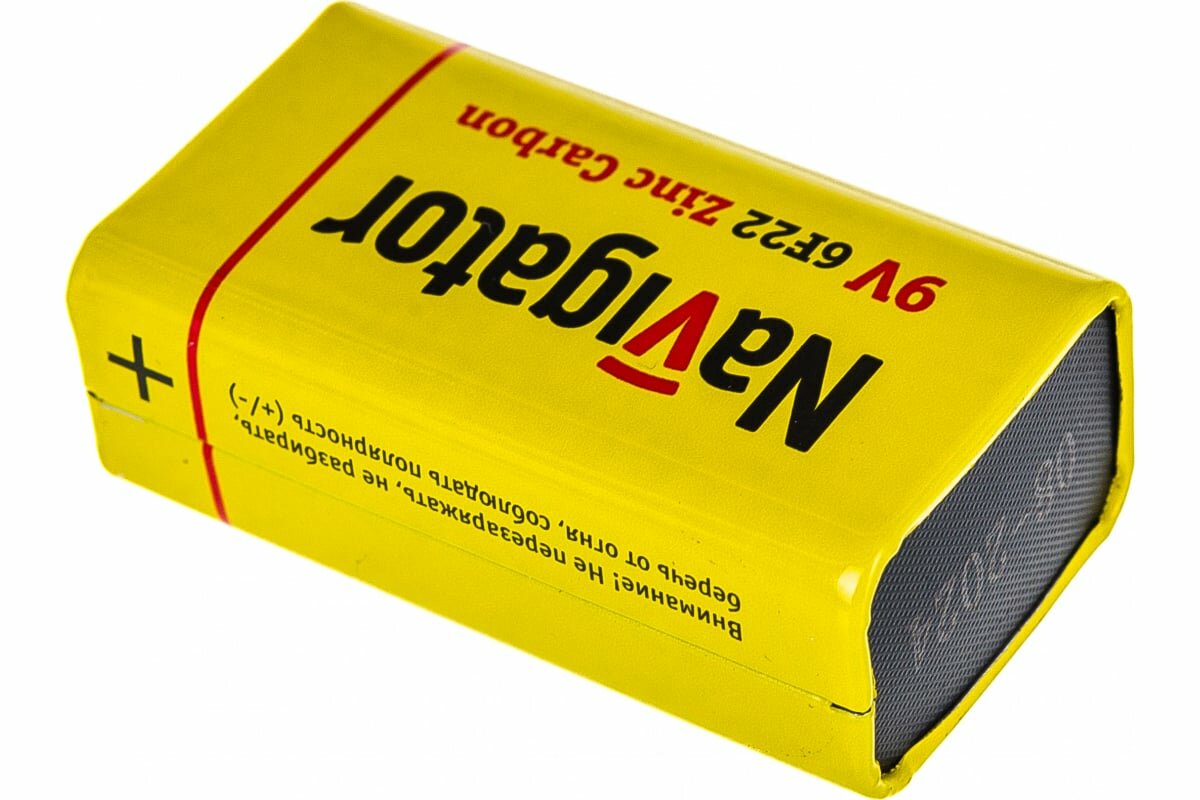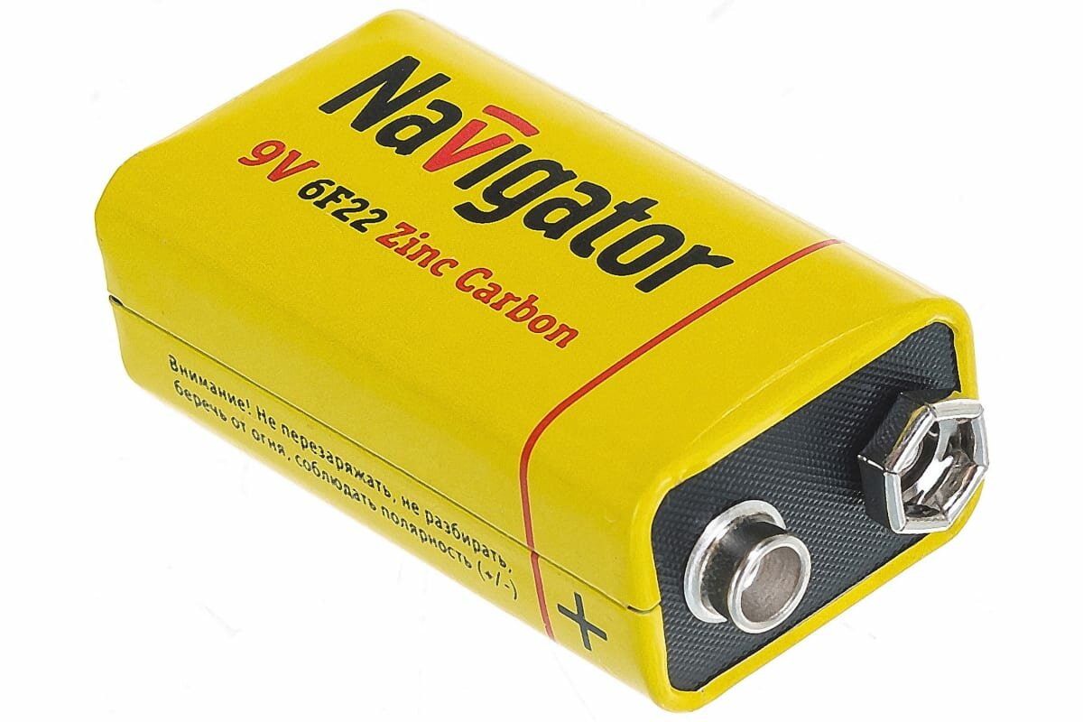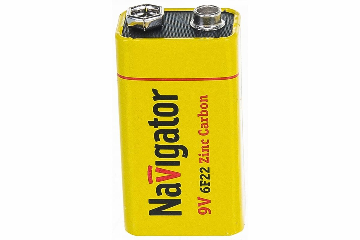 Элементы питания (батарейки) Navigator изготовлены из высококачественных материалов по современным технологиям и проходят строгий контроль качества на каждом этапе производства. Они отвечают всем требованиям экологической безопасности и не содержат ртуть и кадмий. Продаются в пленке по 1 шт. Цена указана за 1 шт. Номинальное напряжение: 9 В Типоразмер: 9V/6 AM 6 Тип батарейки: солевая (углеродно-цинковая) Размер: 26.5*48.5*17.5 мм Срок предэксплуатационного хранения: 3 года