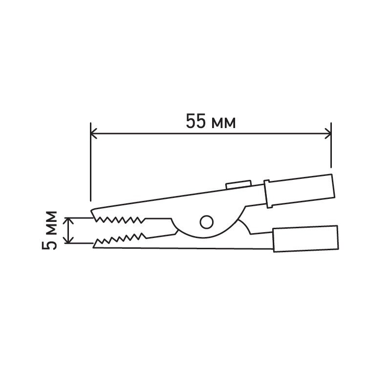 Зажим "крокодил" Rexant (55 мм, красный/черный) – электромеханическое устройство, используемое для быстрого соединения/разъединения контакта проводов при монтаже или иных работах со слаботочными и электрическими сетями. Характерной особенностью зажима являются две фигурные детали с зубцами. Они соединены серединами специальных штифтов и способны поворачиваться на некоторый угол. Пружина отвечает за сжатие «крокодильей челюсти». Контактная часть изделия, полностью закрытая изолятором, выполнена из стали с никелированным покрытием. Изоляция из ПВХ, которой покрыты ручки, исключает поражение электрическим током. Изделие отличается простой и надежной конструкцией.
