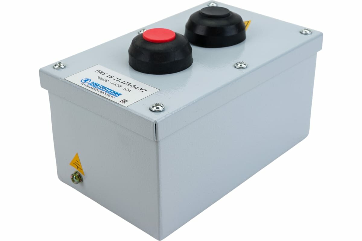 Пост кнопочный ПКУ-15-21.121-54 У2 (1хВК30-10-11110-54 (1з+1р) черн. + 1хВК30-10-11110-54 (1з+1р) красн. + PG-19) пост управления Электротехник ET054487Пост кноп. ПКУ 15-21.121-54 У2 (1хКЕ081/2 (1з+1р) черн. + 1хКЕ081/2 (1з+1р) красн. + PG-19) пост управления Электротехник ET054487 представляют собой средство управления коммутацией электрических цепей управления переменного тока. Корпус металлический, штампованный. Коммутационная износостойкость контактов кнопок предусматривает 5 млн. циклов. IP54. Монтируется на ровную поверхность. Предназначены для работы под напряжением до 660 В, частотой 50 Гц и постоянного тока до 440 В.