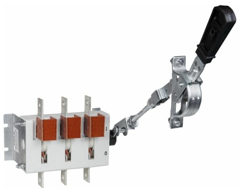 Выключатель-разъединитель 3 полюсный на номинальный ток 400 А, в котором установлена несъемная рукоятка.