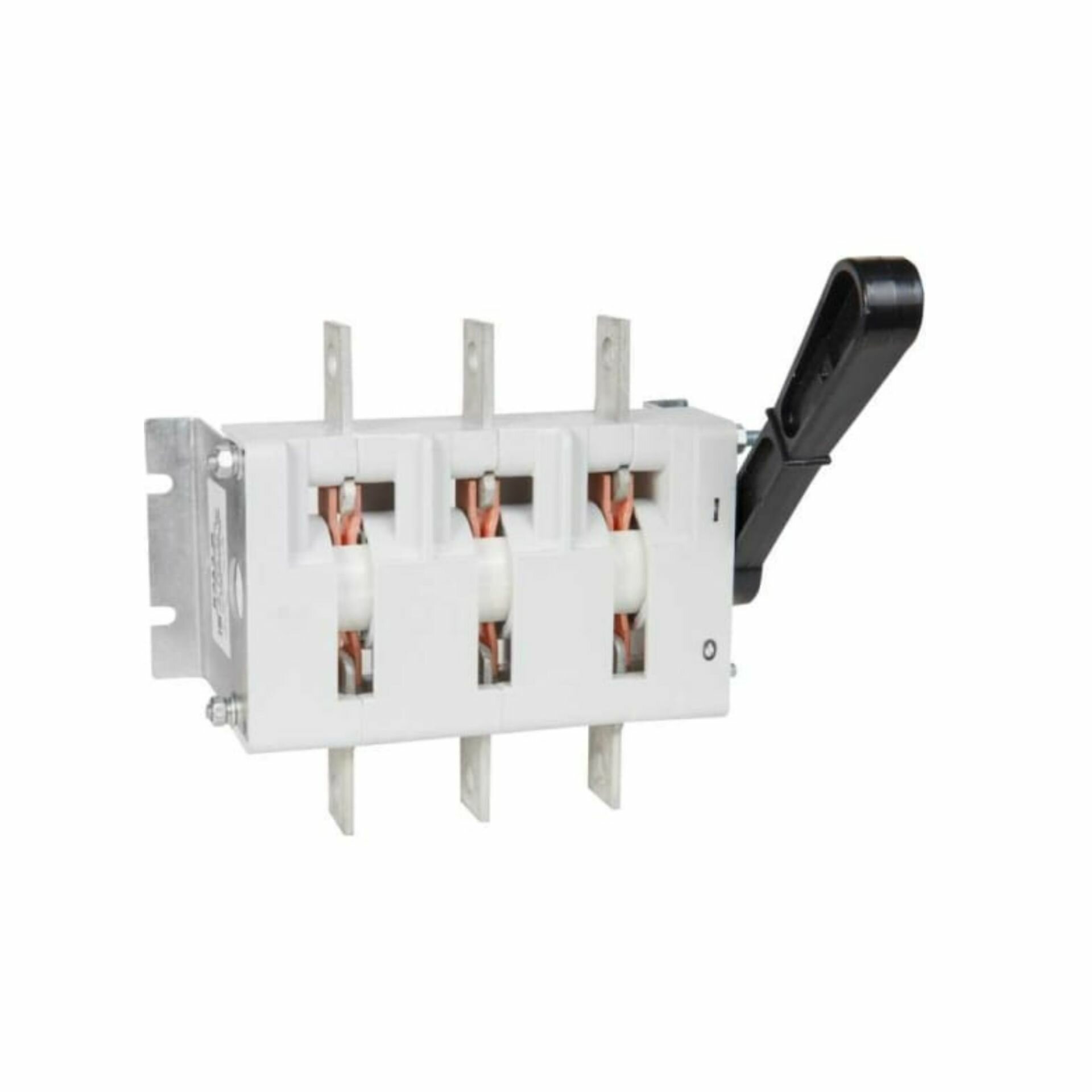 Выключатель-разъединитель 3 полюсный на номинальный ток 400 А, в котором установлена несъемная рукоятка.