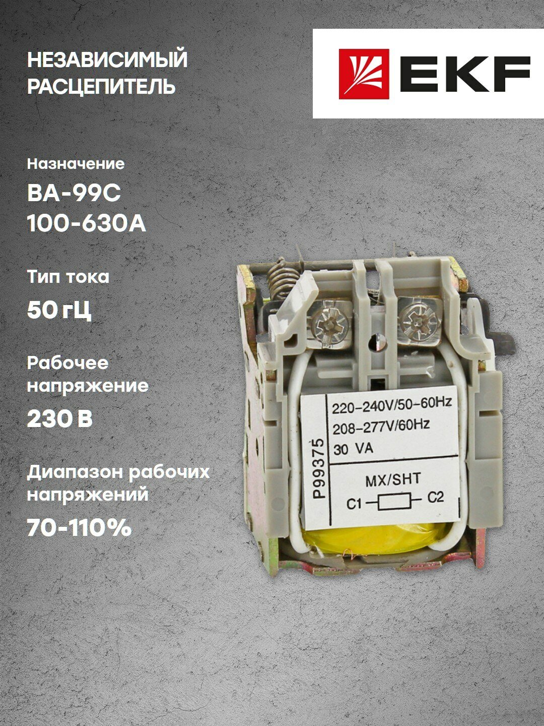 | Тип изделия | Шунтовой/независимый расцепитель (для силового выключателя) |