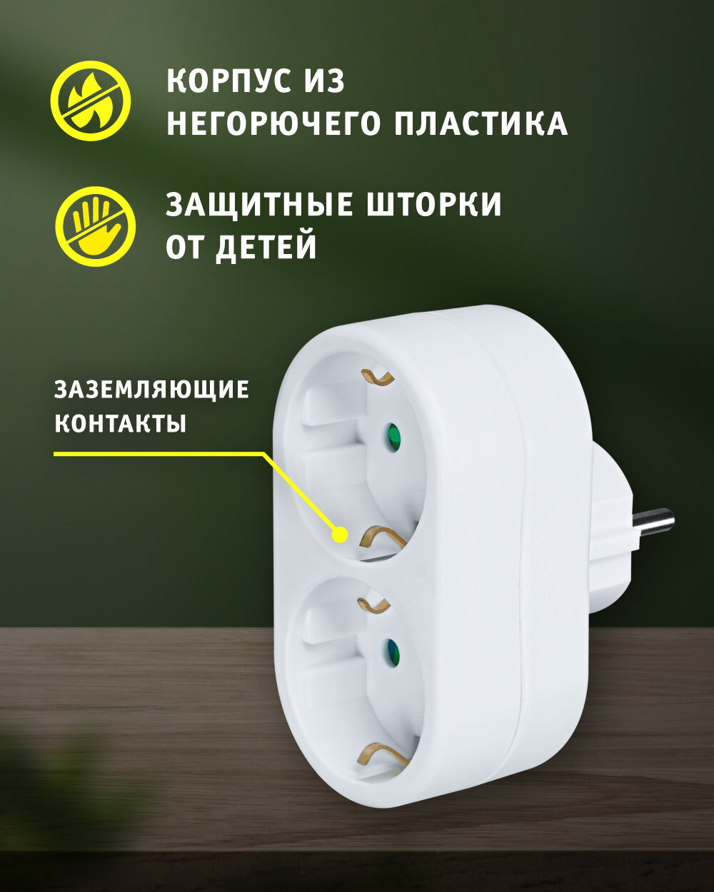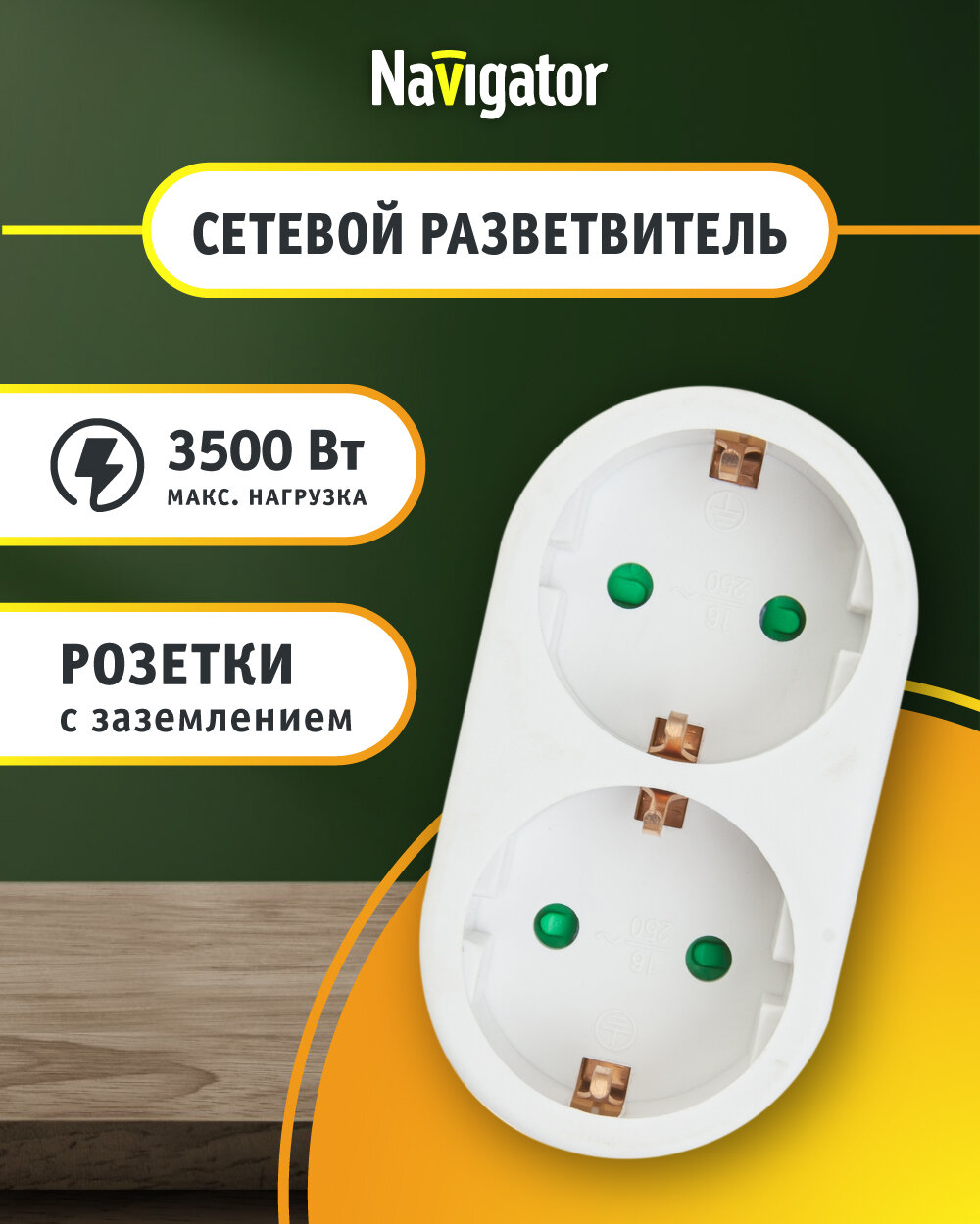 Сетевой разветвитель 2 гнезда с заземлениемДвойник в розетку Navigator это удобное и практичное устройство, которое позволяет подключить одновременно два электрических прибора к одной розетке.Сетевой разветвитель изготовлен из негорючего ударопрочного и негорючего ABS пластика, что обеспечивает долгий срок службы и гарантирует надежность в использовании. Цвет переходника для розетки белый, что позволяет ему гармонично вписаться в любой интерьер. Разветвитель подходит для приборов с вилкой российского и евростандарта.Максимальная мощность всех подключаемых приборов 2500 Вт. Двойник для розетки имеет заземление и оснащен специальными защитными шторками. Тройники и разветвители Navigatorсертифицированы, выполнены из безопасных качественных материалов и соответствуют всем нормам и требованиям безопасности.
