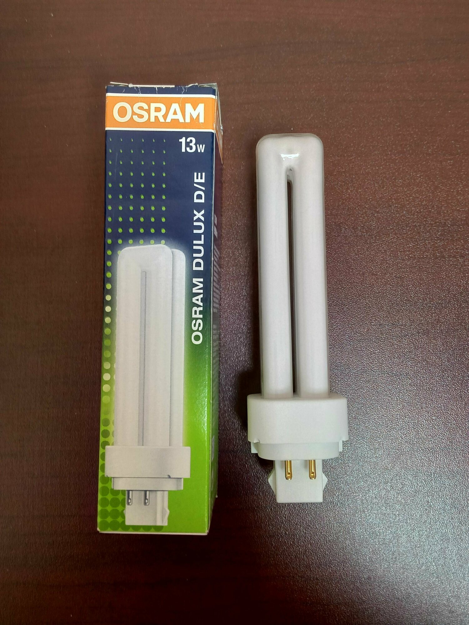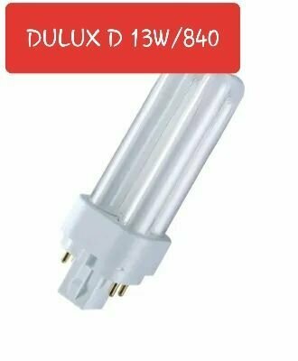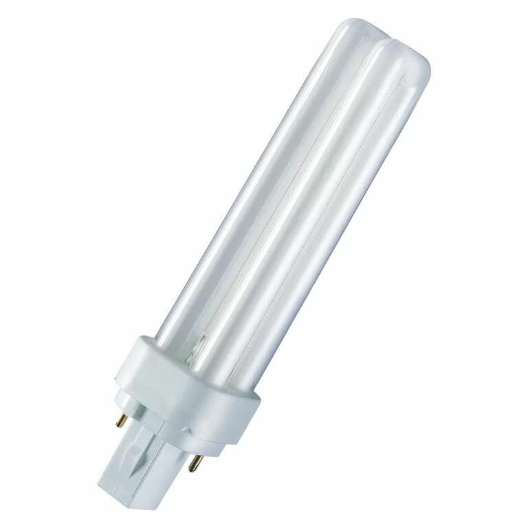 Компактная люминесцентная лампа неинтегрированная OSRAM DULUX D 13Вт с штырьковым одиночным цоколем G24D-1 и двухоборотной колбой.Лицензиатом торговой марки OSRAM в общем освещении является компания LEDVANCE.