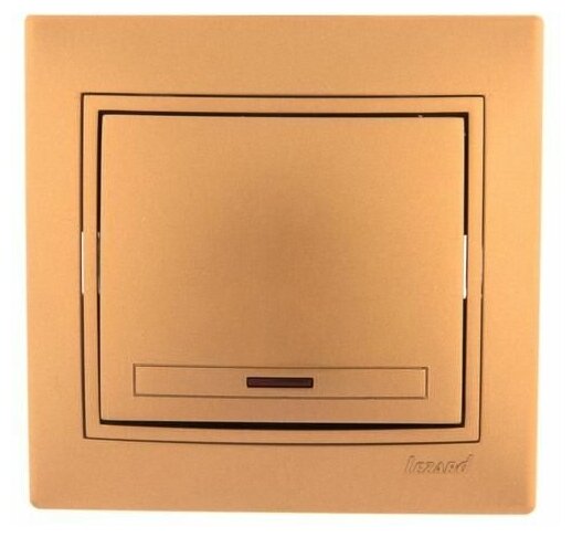 Выключатель 1-кл. СП Мира 10А IP20 с подсветкой метал. зол. 701-1313-111 LEZARD 701-1313-111 Mira (размер: 80 x 80 x 34мм)