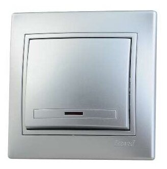 Выключатель 1-кл. СП Мира 10А IP20 с подсветкой метал. сер. 701-1010-111 LEZARD 701-1010-111 Mira (размер: 80 x 80мм)
