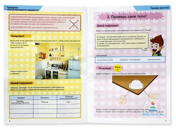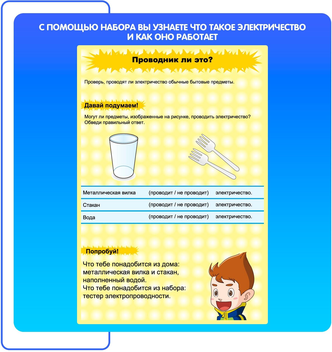 Японские опыты Науки с Буки . Оказывается, электрический ток умеет сопротивляться! Чему? Об этом можно узнать в процессе научно-познавательных экспериментов, а попутно выяснить, что такое электропроводность, какие материалы хорошо проводят электричество, а какие не проводят вообще. А еще с помощью электричества можно собственноручно смастерить забавный музыкальный инструмент и даже проиграть на нем несколько простых мелодий! Отныне взрослые могут быть спокойны: зная о свойствах электрического тока, их любознательное чадо будет обращаться с электроприборами осторожно и аккуратно.