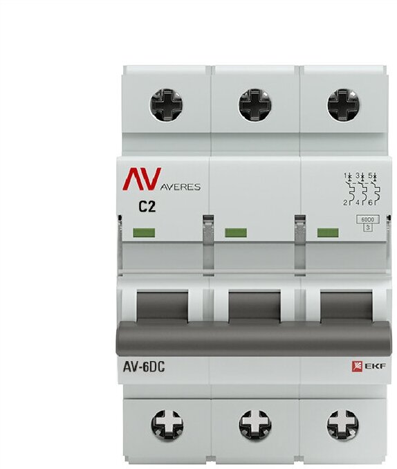 mcb6-DC-3-02C-av Выключатель автоматический AV-6 DC 3P 2A (C) 6kA AVERES Упаковка (40 шт.) EKF