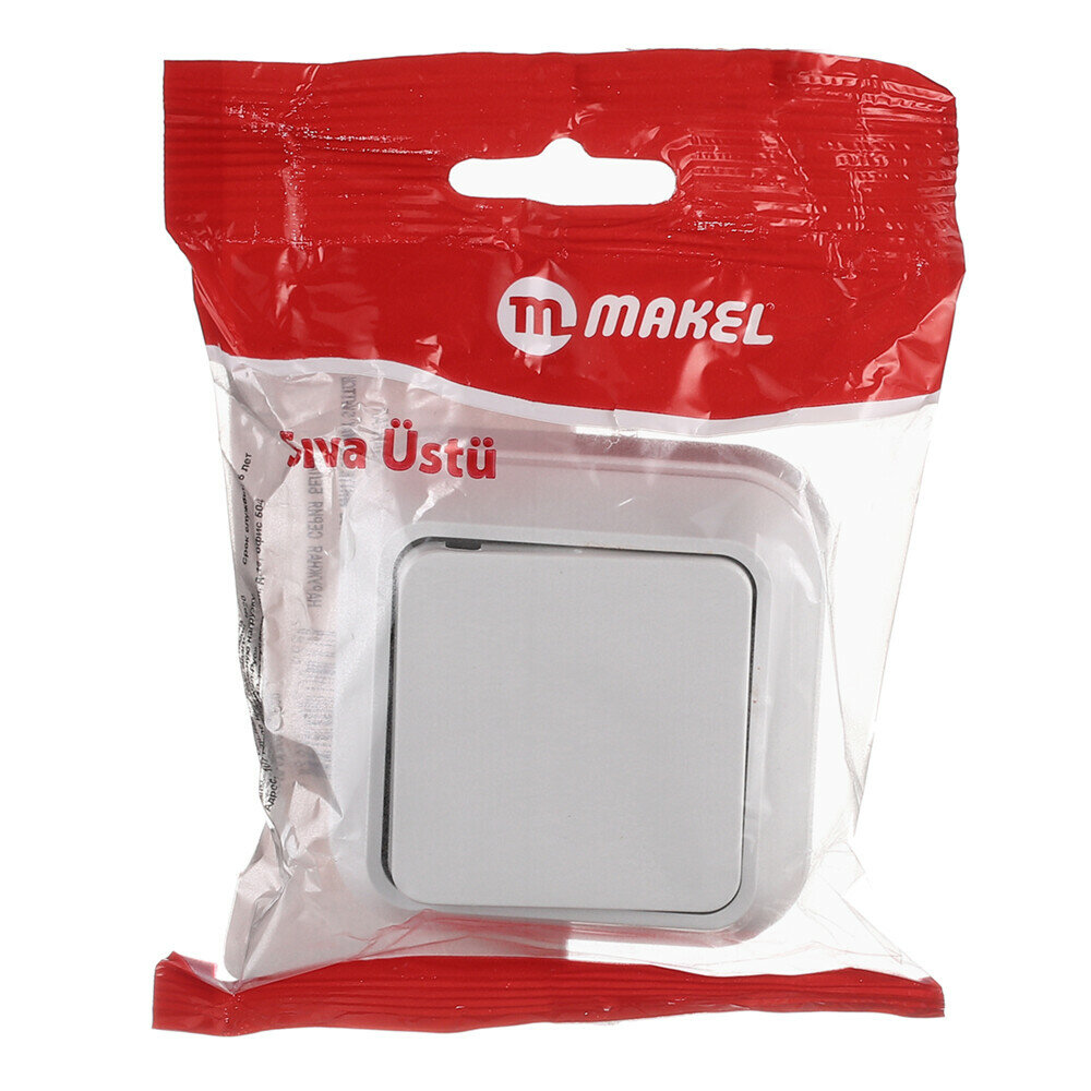 Выключатель накладной одноклавишный, белый Makel Siva Ustu 45101 предназначен для включения бра, светильников и люстр. Используется в составе открытой проводки. Материал корпуса - пластик. Он устойчив к ударам, поверхность гладкая, цвет белый. Площадь сечения провода не должна превышать 2,5 мм.