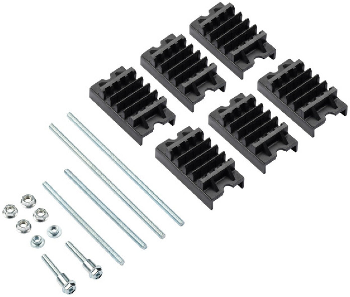 Система наборных шинодержателей предназначена для создания требуемой конфигурации сборных шин и шинных мостов до 4000А в зависимости от требований проекта. Основанием служит прочный алюминиевый перфорированный профиль, на который устанавливаются изоляторы. Изоляторы обеспечивают возможность установки шин толщиной 5 и 10 мм в количестве от 2-х до 4-х на одну фазу. В составе комплектов идёт необходимый крепёж- гайки, шпильки, винты.