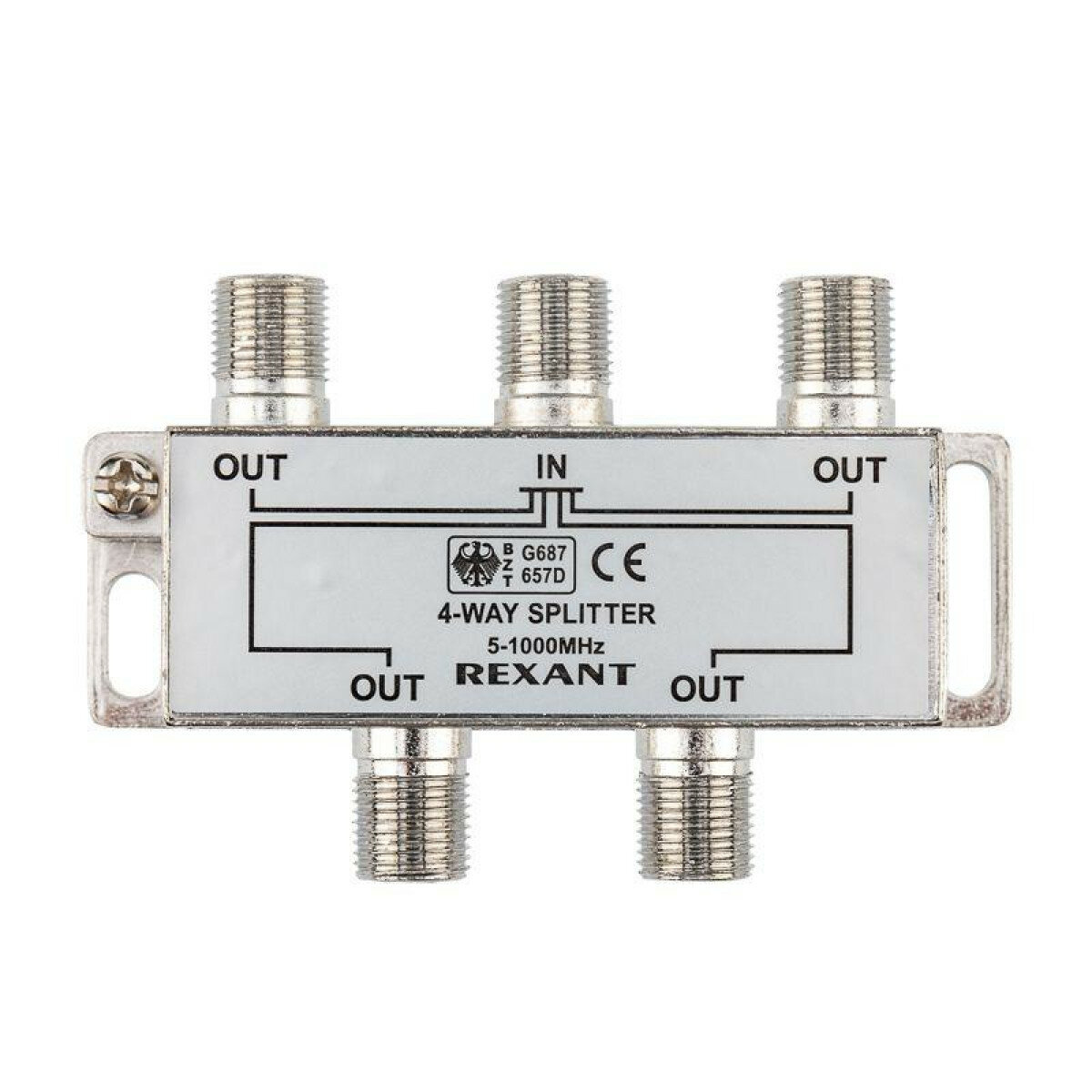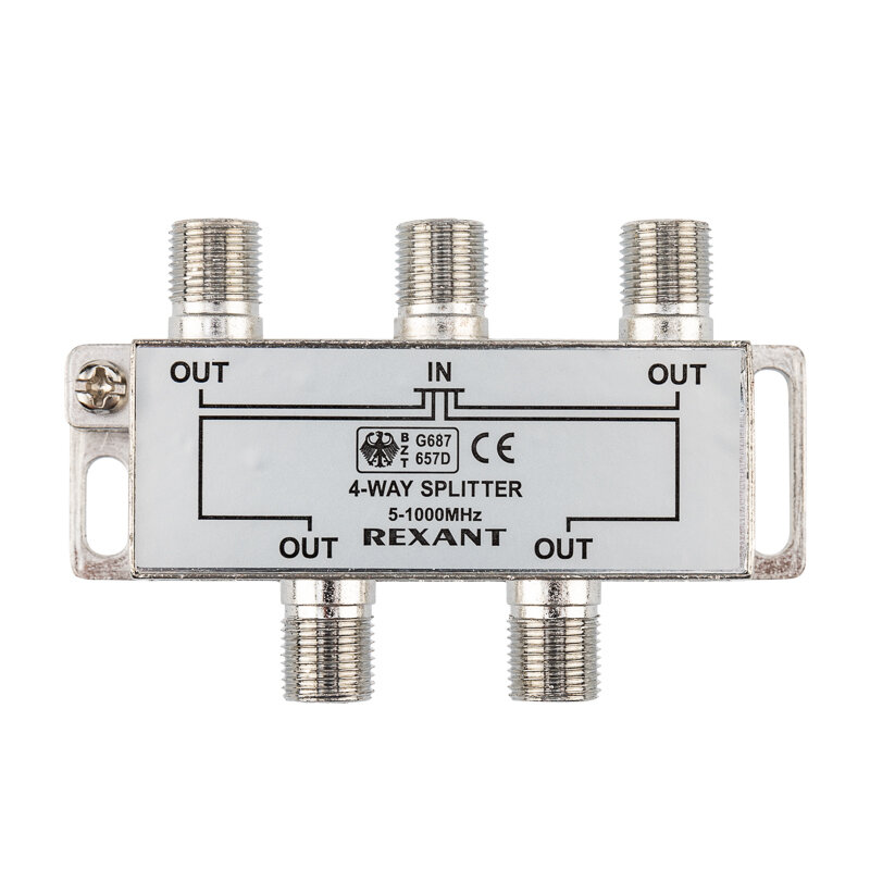 Телевизионный делитель/сплиттер с выходами под F-разъемы предназначен для разделения сигнала на 4 части, актуален в многокомнатных квартирах. Полоса пропускания от 5 до 1000 МГц - для стандартного эфирного телевидения. Устройство обеспечит просмотр ТВ без помех с сохранением качества сигнала.