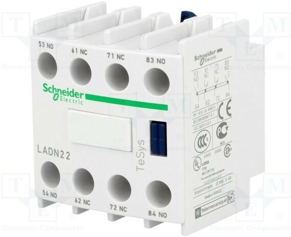 LADN22 ДОП. КОНТ. БЛОК 2НО+2НЗ ФРОНТАЛЬНЫЙ МОНТАЖ КРЕПЛЕНИЕ С ПОМОЩЬЮ ВИНТОВЫХ ЗАЖИМОВ Schneider Electric