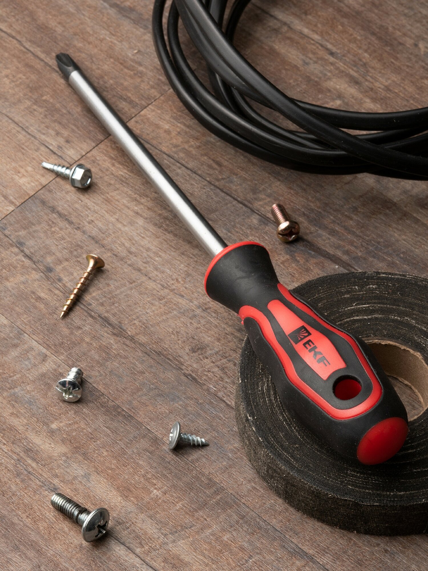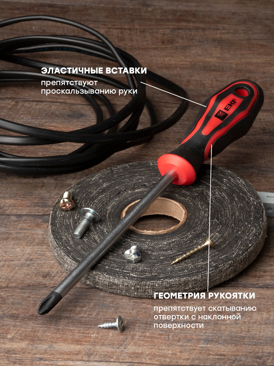 ОПИСАНИЕ. Отвертки - это ручной инструмент с широким спектром применения у профессионалов и любителей, предназначенный для завинчивания и отвинчивания крепежных изделий с резьбой. ПРЕИМУЩЕСТВА. • Рабочая часть отверток выполнена из Cr-V – хромованадиевой стали, что делает ее устойчивой к механическим повреждениям, температурным воздействиям и образованию коррозии. • Намагниченный наконечник с дополнительной закалкой HRC 50-55. • Высококачественный материал двухкомпонентной рукоятки обеспечивает плотный контакт и минимизирует эффект скольжения. • Диаметр и специальная форма рукояток обеспечивают увеличенный крутящий момент при минимальных физических затратах. ПРИМЕНЕНИЕ. Электромонтажные работы: • Ремонт бытовой техники и компьютеров. • Сборка и разборка мебели. • Обслуживание транспорта и т. д.