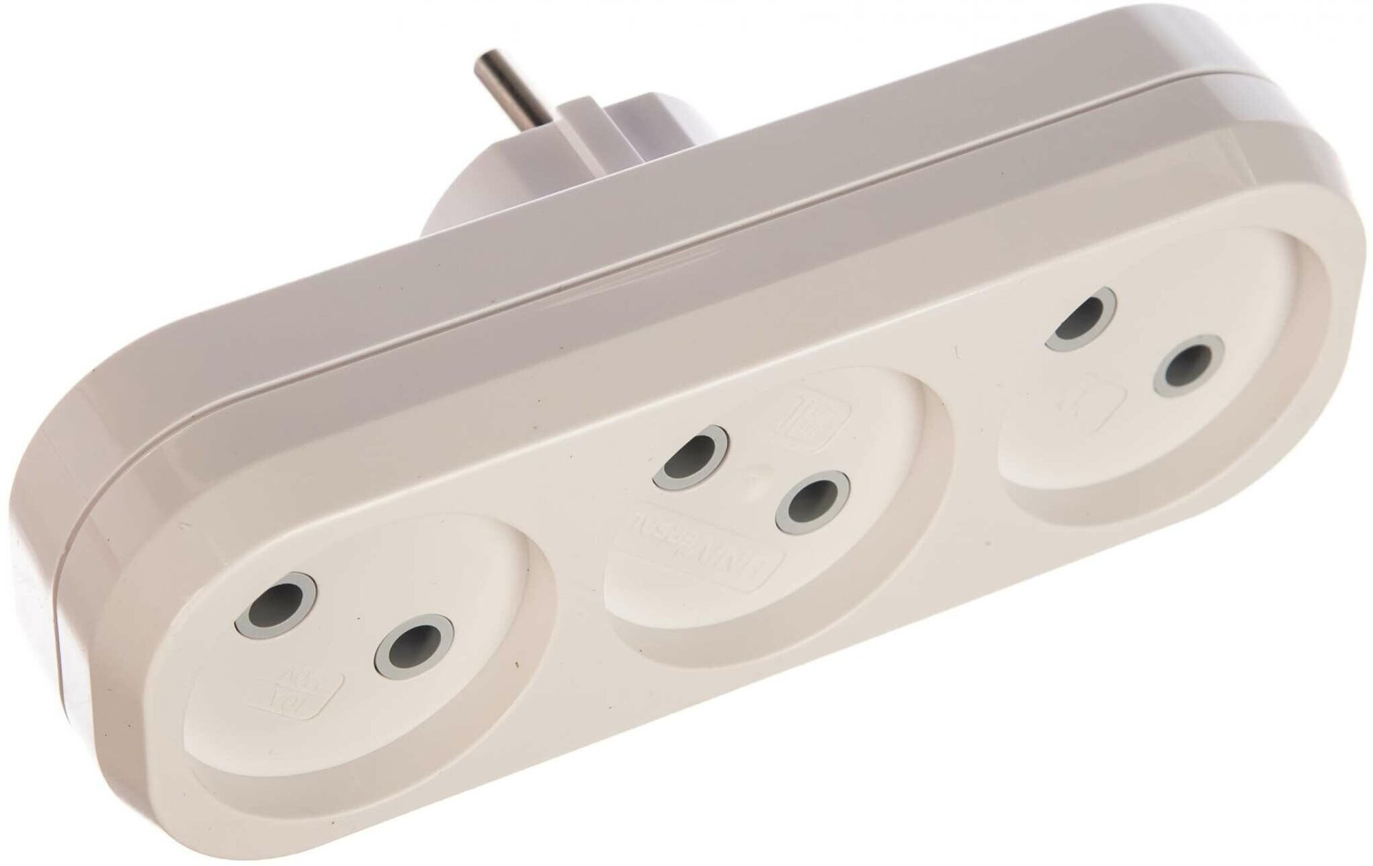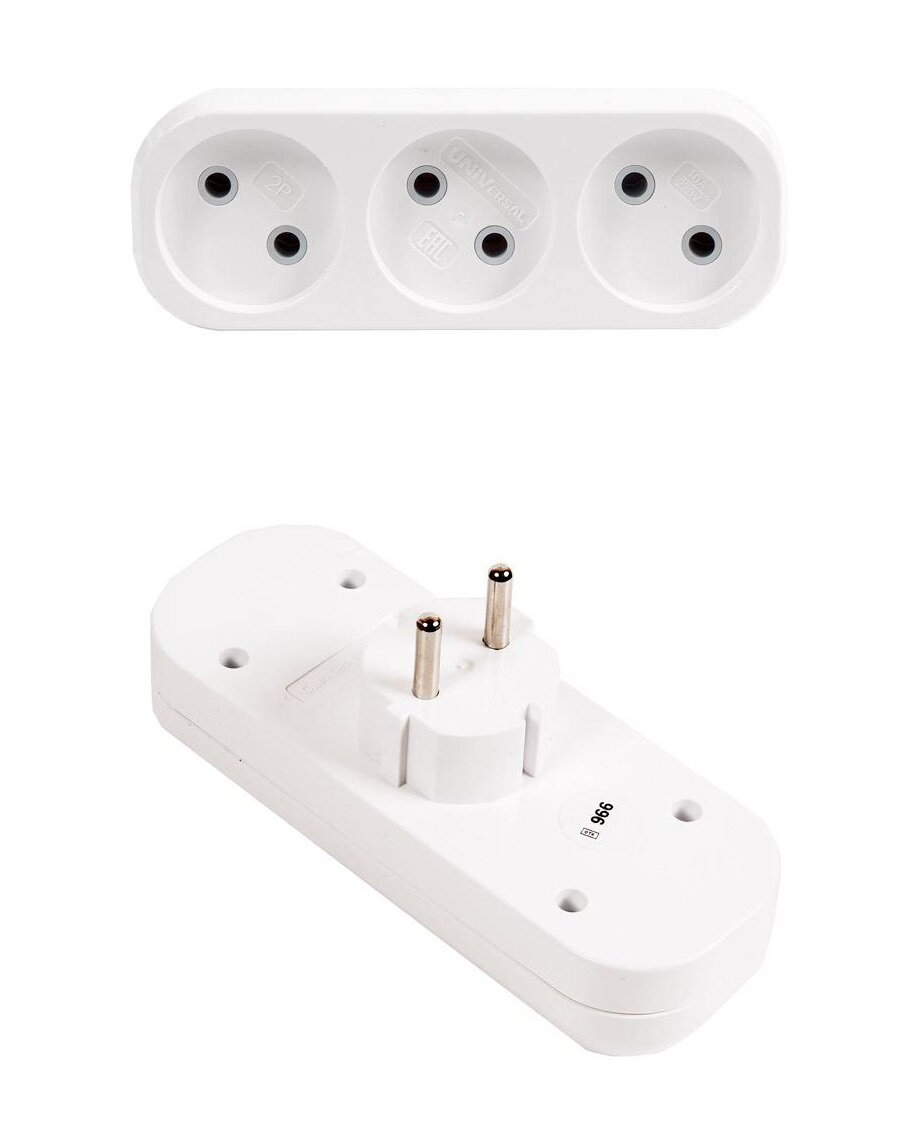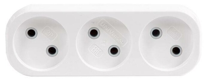 Разветвитель 3 гнезда без заземления плоский 10А UNIVersal А203 — это устройство, которое позволяет одновременно подключить несколько электроприборов.