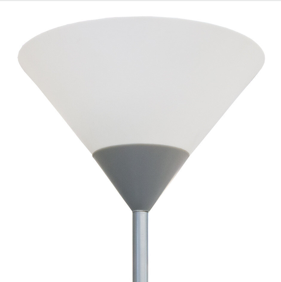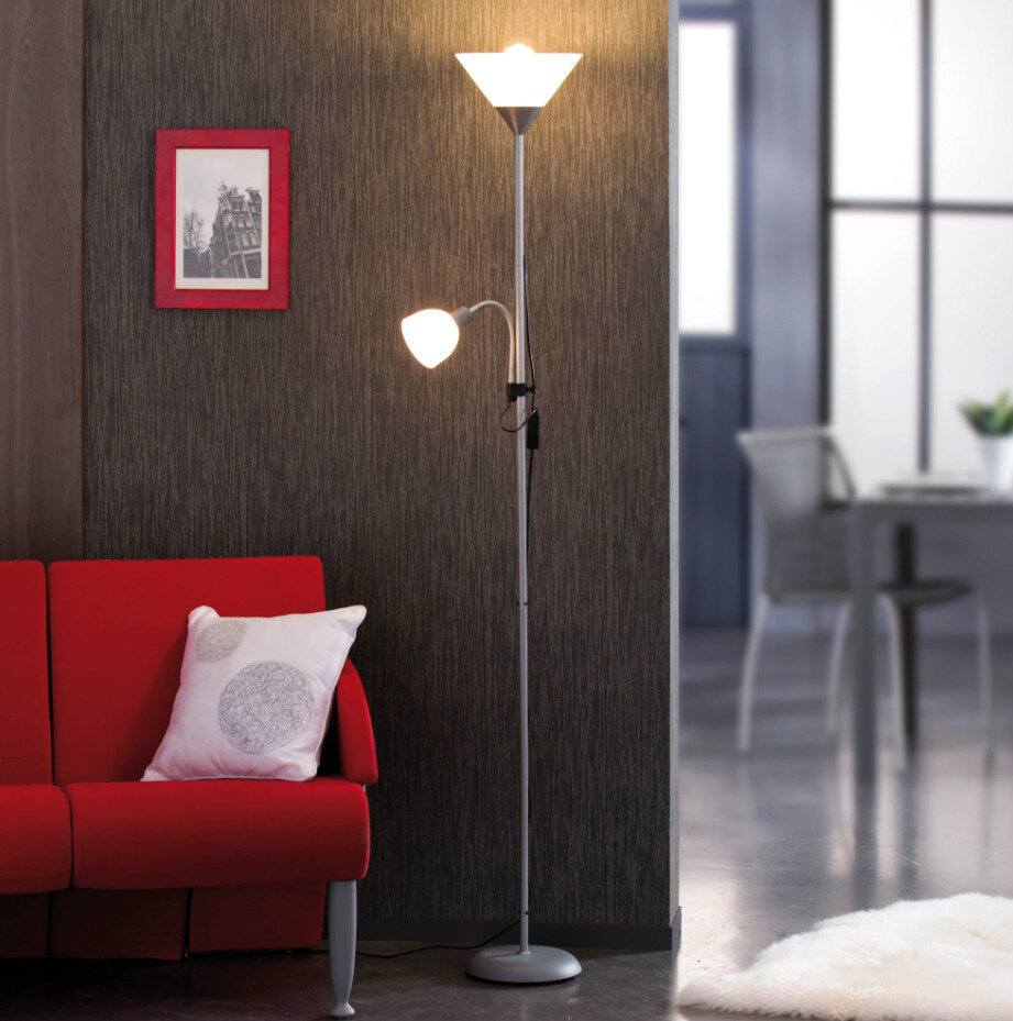 Элегантный торшер Дуо идеально подойдет для организации комфортного зонального освещения в спальне, оформленной в классическом стиле или в скандинавском стиле.Напольный светильник с двумя разнонаправленными плафонами предназначен для декоративного оформления с дополнительным освещением.Напольный торшер выполнен в современном стиле и обладает лаконичным дизайном: на хромированном круглом основании располагается металлическая штанга с матовыми плафонами.Устанавливается в гостиных, спальнях и кухнях, с его помощью легко сделать акцент на определенную зону помещения.Плафоны с матовой поверхностью выполнены в белом цвете, имеют конусную форму.Их конструкция предполагает равномерное рассеивание светового потока, гарантирует комфорт для глаз, помогает создать уютную атмосферу в помещении.Открытый тип плафона предоставляет свободный доступ к цоколю, облегчая процедуру замены лампы.Круглое основание светильника обеспечивает его устойчивое положение на полу.Выключатель на проводе позволяет отключать прибор от электросети, не вынимая вилку из розетки.Преимущества:- мобильность: торшер легко и просто можно переместить с одного на другое место;- легкость установки: изделие не требует монтажа проводки, имеет простое подключение к розетке;- экономия электроэнергии при использовании торшера вместо центрального освещения.Лампы в комплект не входят.