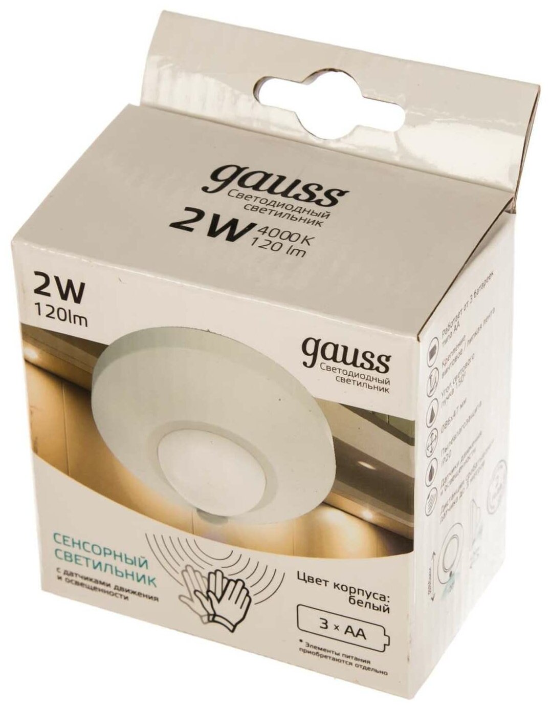CL001 Белый Светильник многофункциональный автономный сенсорный 2W (круг) 1/6/36 Gauss