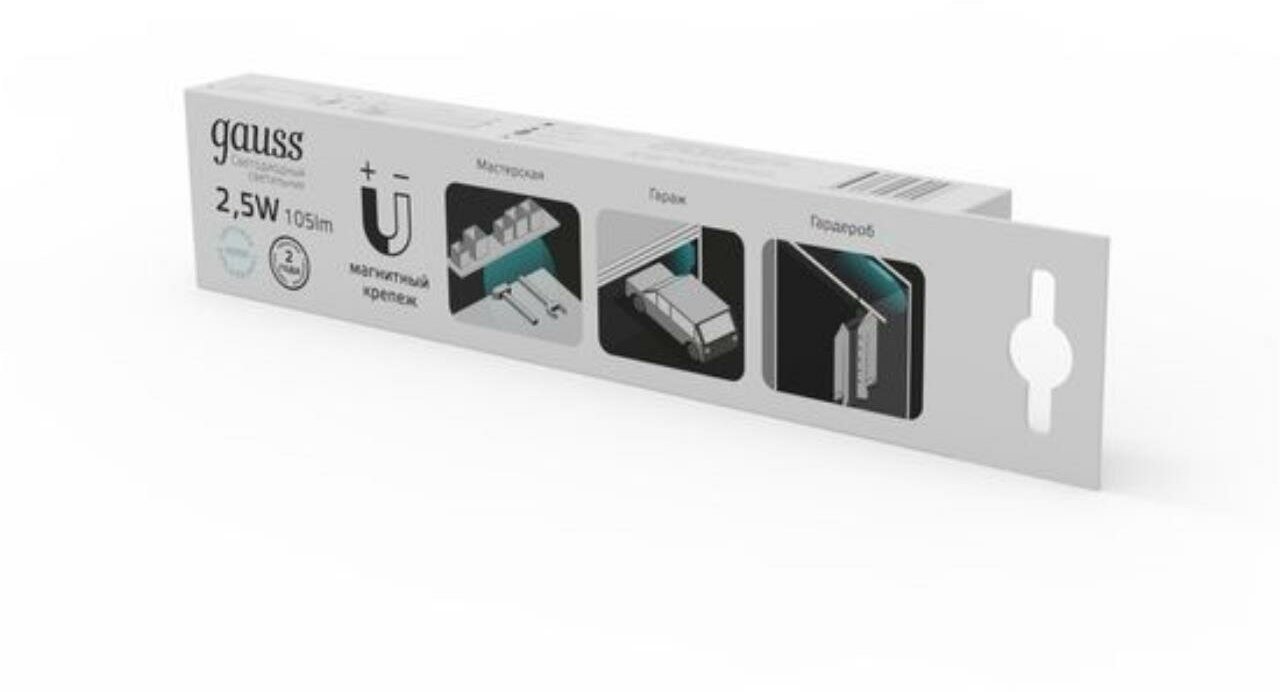 Gauss Светильник линейный многофункциональный автономный сенсорный 2.5W 105lm Данная модель имеет аккуратную форму, что дает возможность воплотить в реальность даже самую невероятную дизайнерскую задумку. Ведь, как всем хорошо известно, именно освещение является неотъемлемой составляющей любого интерьера. Характеристики: Размеры: 215х47х18 мм Мощность: 2.5 Вт Цветовая температура: 4000K Световой поток, Лм: 105 Степень защиты: IP20