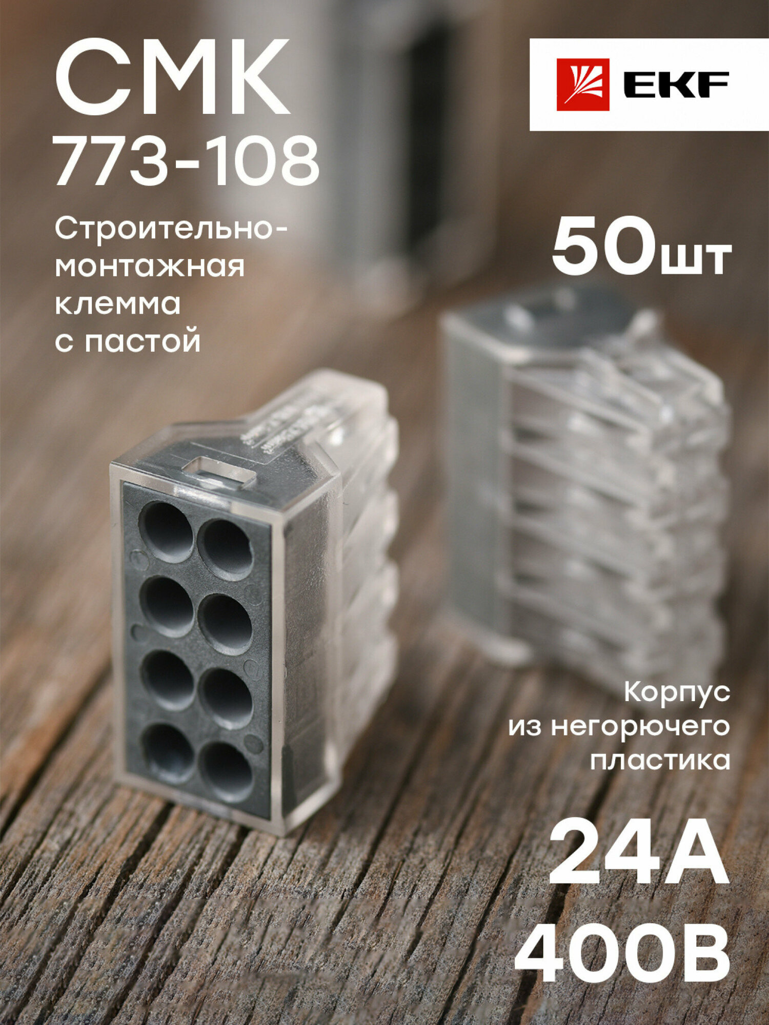plc-smk-108 Строительно-монтажная клемма СМК 773-108 8 отверстий 10-25мм2 (50шт.) PROxima Упаковка (50 шт.) EKF СМК 773-108 PROxima