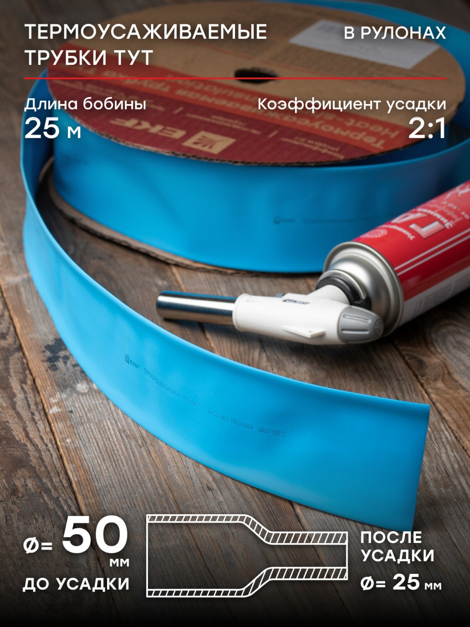 tut-50-g Термоусаживаемая трубка ТУТ 50/25 синяя рулон PROxima Упаковка (50 шт.) EKF
