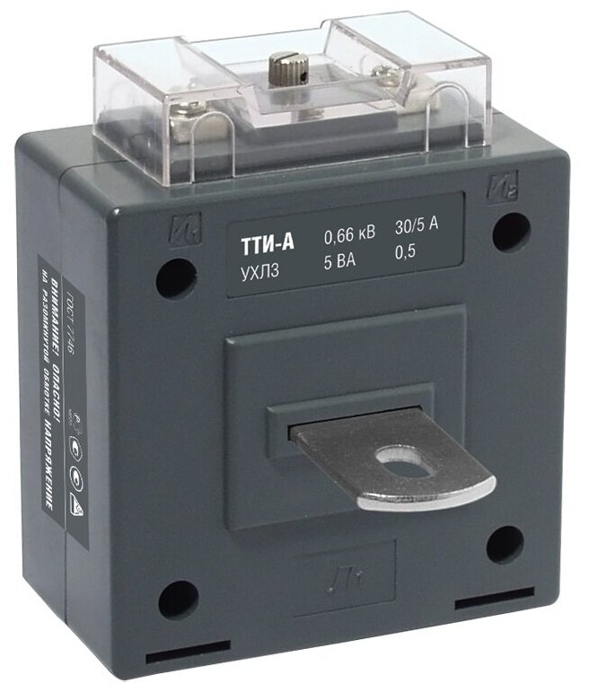 Трансформаторы тока ТТИ предназначены: - для применения в схемах учета электроэнергии при расчетах с потребителями; - для применения в схемах коммерческого учета электроэнергии; - для передачи сигнала измерительной информации измерительным приборам или устройствам защиты и управления. Соответствуют требованиям ГОСТ 7746 и изготовлены по техническим условиям ТУ 3414-001-18461115-2006. Трансформаторы тока ТТИ за высокие показатели качества награждены серебряной медалью на международном конкурсе "Лучшее электрооборудование-2005 года", в организации которого принимали участие Министерство промышленности и энергетики РФ, Госстандарт РФ, АНО "Союзэкспертиза". На основании положительных результатов испытаний на трансформаторы тока ТТИ выдано свидетельство об утверждении типа средств измерений. Трансформаторы тока ТТИ внесены в государственный реестр средств измерений под номером 28139-12.ПреимуществаМедная луженая шина у трансформаторов ТТИ-А, дает возможность подключать как медные, так и алюминиевые проводники. Корпус всех трансформаторов ТТИ выполнен из самозатухающего пластика. В комплект каждого трансформатора входит крышка, которой закрываются клеммы вторичной обмотки. Также трансформаторы ТТИ-А комплектуются винтами и гайками для крепления проводников. Трансформаторы ТТИ-30/ТТИ-125 комплектуются скобой для крепления шины в окне трансформатора. Вес и габариты - на 10-20% меньше аналогичных трансформаторов тока других отечественных производителей. Межповерочный интервал 5 лет.