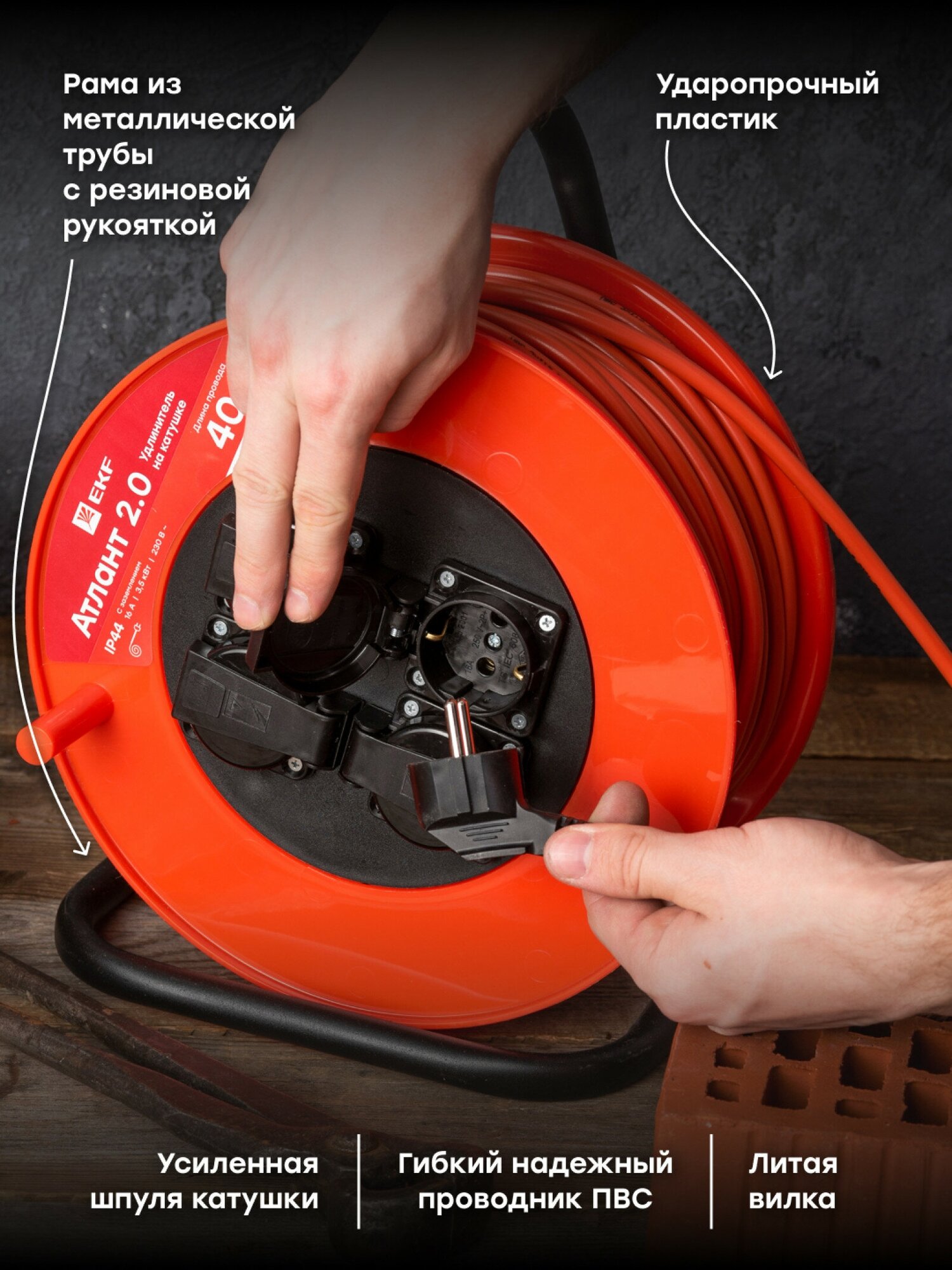 UKA02-16-315R-4-40-IP44 Удлинитель на катушке "Атлант 2.0" 4 гнезда 40м с заземлением КГ 3*15 16А/35кВт IP44 PROxima Упаковка (2 шт.) EKF